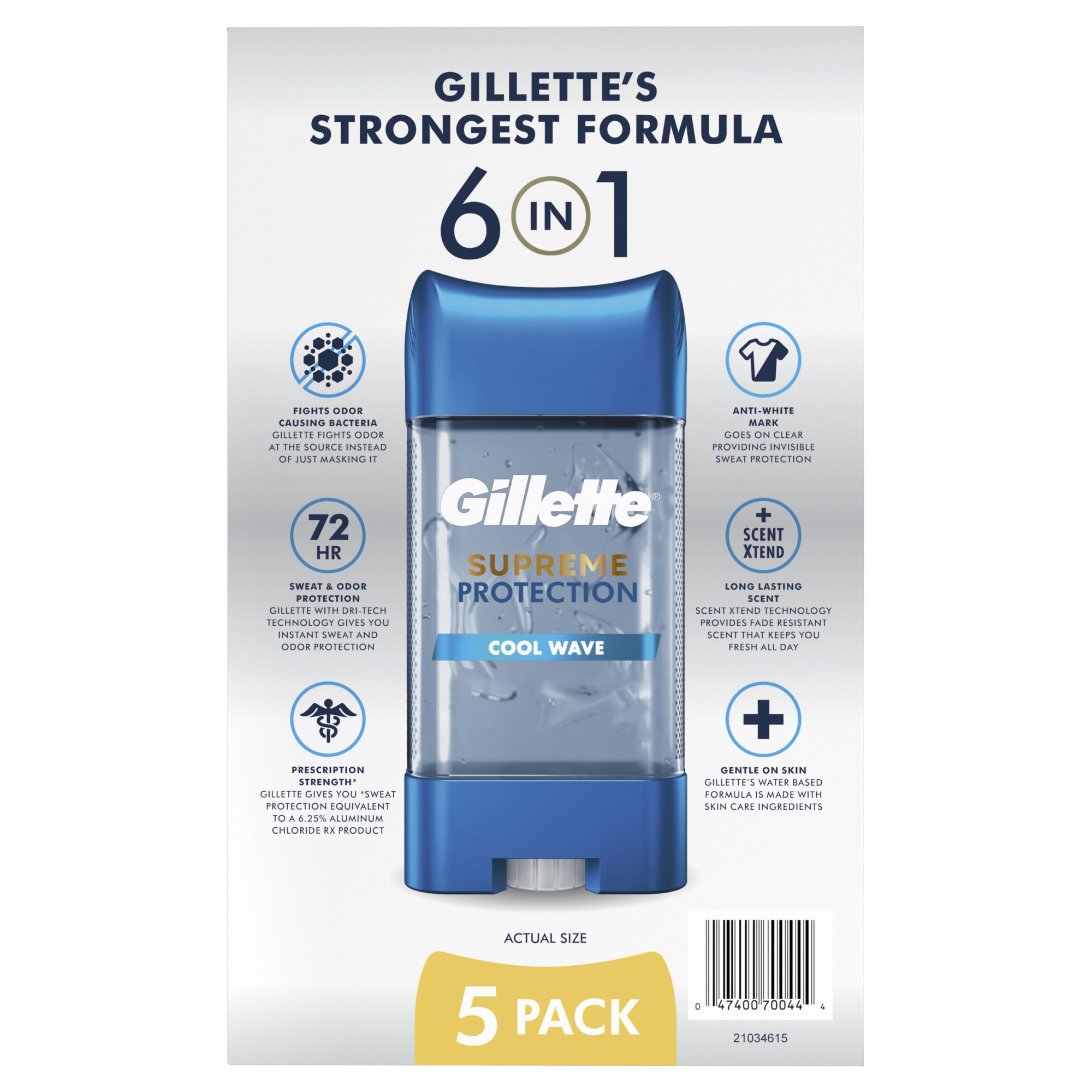 Gillette Clear Gel Antiperspirant and Deodorant for Men, Supreme Protection, Cool Wave, 5 pk./3.8 oz.