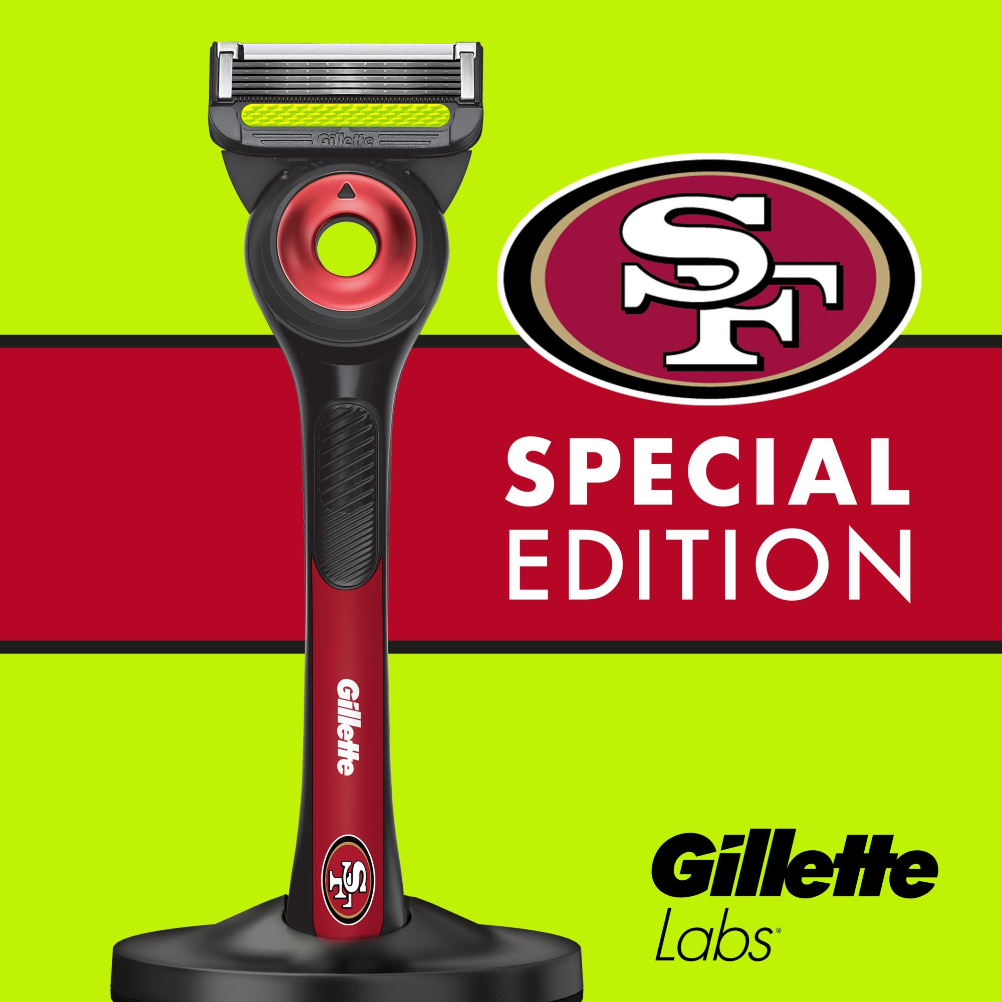 Gillette Labs Official 49ers Licensed Razor for Men, 1 Handle, 4 Blade Refills, with Magnetic Stand