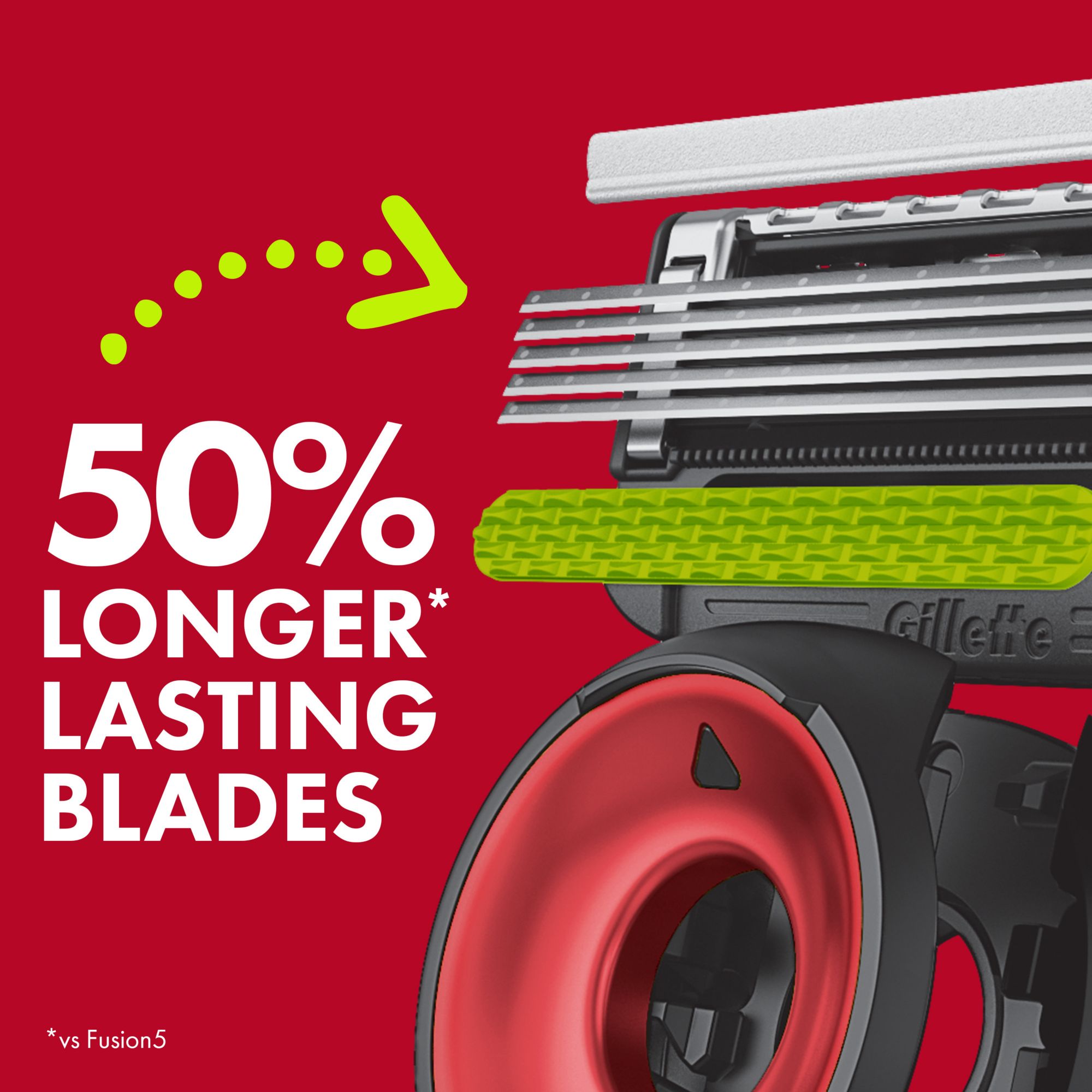 50% Longer-lasting blades*: So you'll be ready for every touchdown and tailgate. *per cartridge vs Fusion5