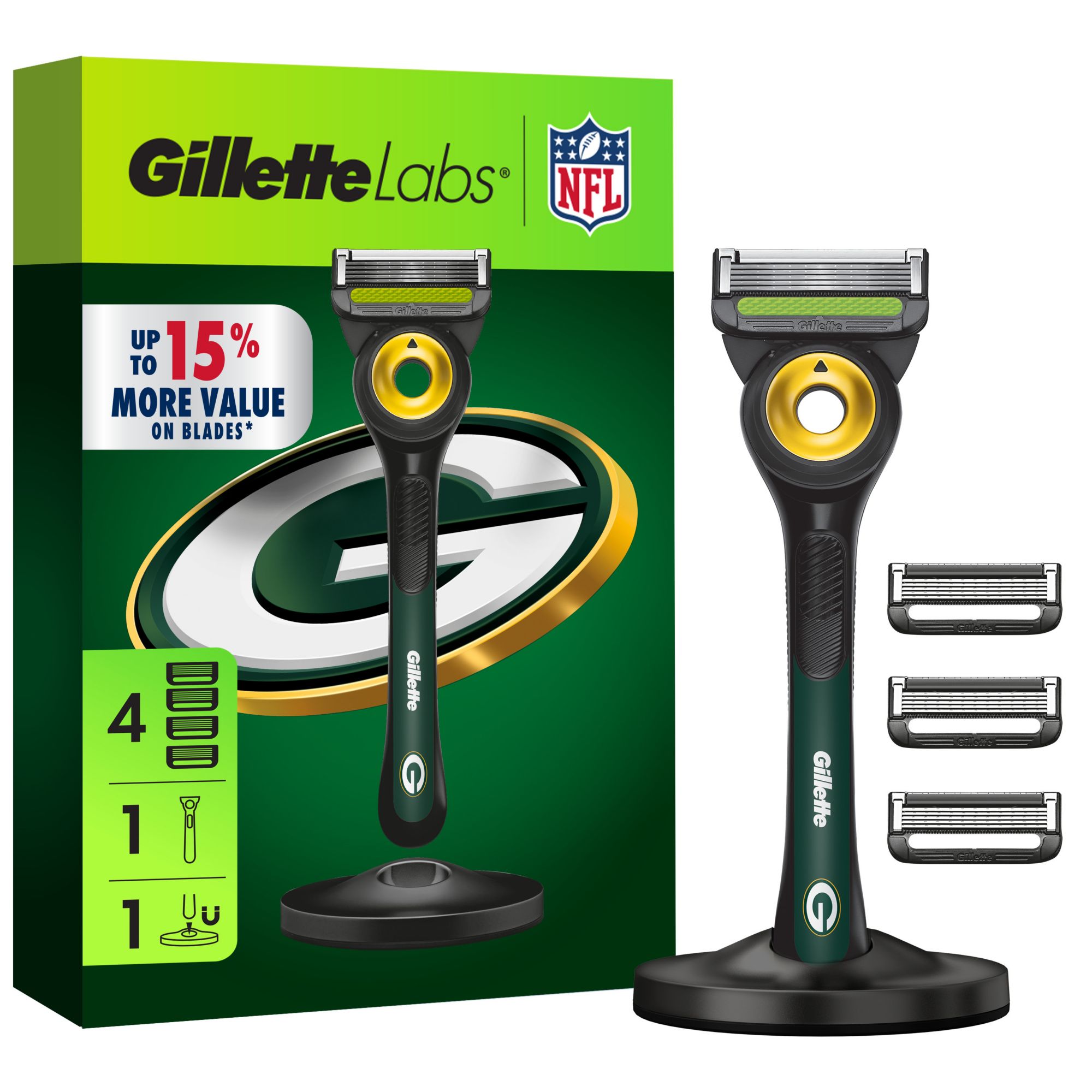 Gillette Labs Official Packers Licensed Razor for Men, 1 Handle, 4 Blade Refills, with Magnetic Stand