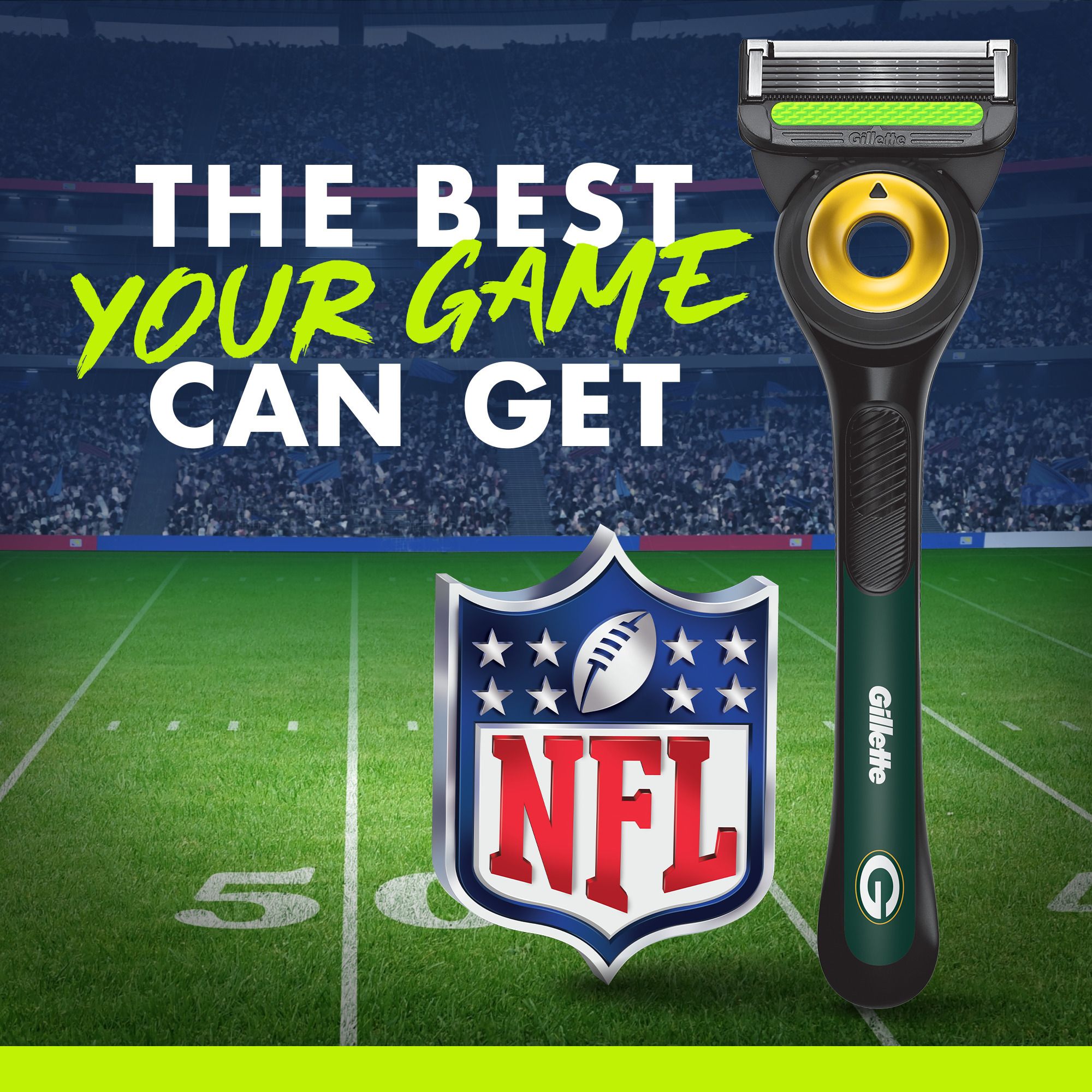 Get game day ready with the Special Edition GilletteLabs Green Bay Packers Razor, the ultimate shaving tool to celebrate your team. This razor is the Best Your Game Can Get, featuring five of Gillette's Best Blades* that last 50% longer than Fusion, per cartridge. This Special Edition NFL Razor features GilletteLabs' five integrated technologies to help you cheer on your team with confidence. Equipped with an exfoliating bar to release trapped hairs for a smooth shave, a precision trimmer for tricky areas, Lubrastrip for incredible comfort, and a flexdisc that contours to your face, you'll be looking sharp for every touchdown. Plus, it's compatible with GilletteLabs razor blade refills and the Gillette Heated Razor. *Blades are also available on other Gillette products.