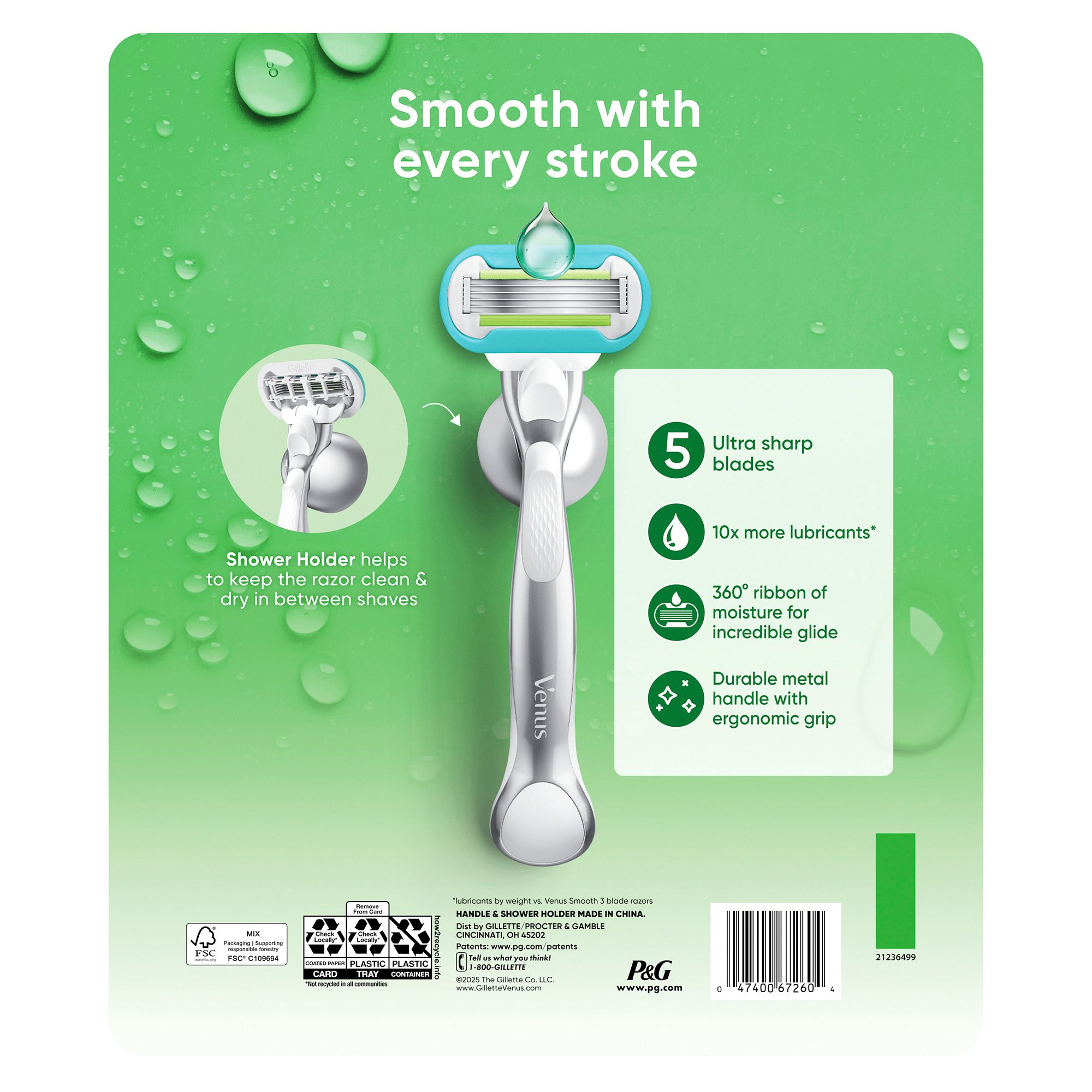 Venus female razors for women are designed with a woman's body in mind. From handles designed for a comfortable grip to pivoting heads that contour to curves, Venus razors are designed to help reveal touchably smooth skin. Platinum Edition: Enjoy a close, controlled shave with Venus Platinum Extra Smooth razors. With five diamond-like coated blades for a closer shave, and a solid metal handle that perfectly fits your hand, you'll experience skin that feels smoother for longer (vs Venus Smooth). The razor refills have 5 diamond-like coated blades for an extra smooth shave that lasts. The razor handle is an ergonomically molded metal design for a weightier shaver grip. Each blade refill lasts up to one month (based on twice/week shave); just use and replace when you're ready for a new one. These female razor blades cut hair closer to the skin, for a longer-lasting smooth (vs Venus Smooth 3 bladed razor for women). The blade's water-activated ribbon of moisture helps protect from nicks and cuts. These razor refills have a pivoting head that adjusts to your curves, including ankles and knees. No awkwardly angling your razor. Did you know that any Venus blade refill fits any Venus razor handle (except Simply Venus and Venus Pubic Hair Razor)? Shave your way without buying a whole new Venus handle.