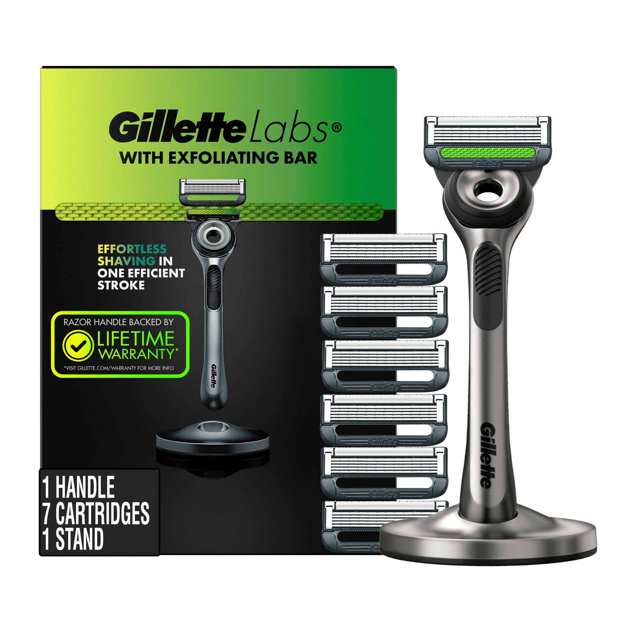 GilletteLabs with Exfoliating Bar by Gillette is the world’s first razor with exfoliating technology built into the handle for effortless shaving in one efficient stroke. The innovative men’s razor makes shaving fast and effortless by removing dirt and debris before the blades pass with the built-in exfoliating technology, for a smooth shave that is quick and easy. Modern meets durable in the diecast zinc metal handle which is also backed by a lifetime warranty*. The 2D flexdisc technology in the handle, contours to your face to ensure comfort and contact with every stroke. Featuring Gillette's best razor blades, this razor for men is designed for a quick and easy shave. When you’re finished shaving, put your razors into the magic magnet docking stand. Its comfortable and modern design will keep your blade upright, clean, dry and ready to use. Use with GilletteLabs razor blade refills which are compatible with both the GilletteLabs with exfoliating bar and the GilletteLabs heated razor sets – just snap it in with a simple click. Choose between a refreshing and exfoliating shave or the soothing warmth of a hot towel shave. The perfect gift for men, this razor represents the next evolution in male shaving. Feel the difference.