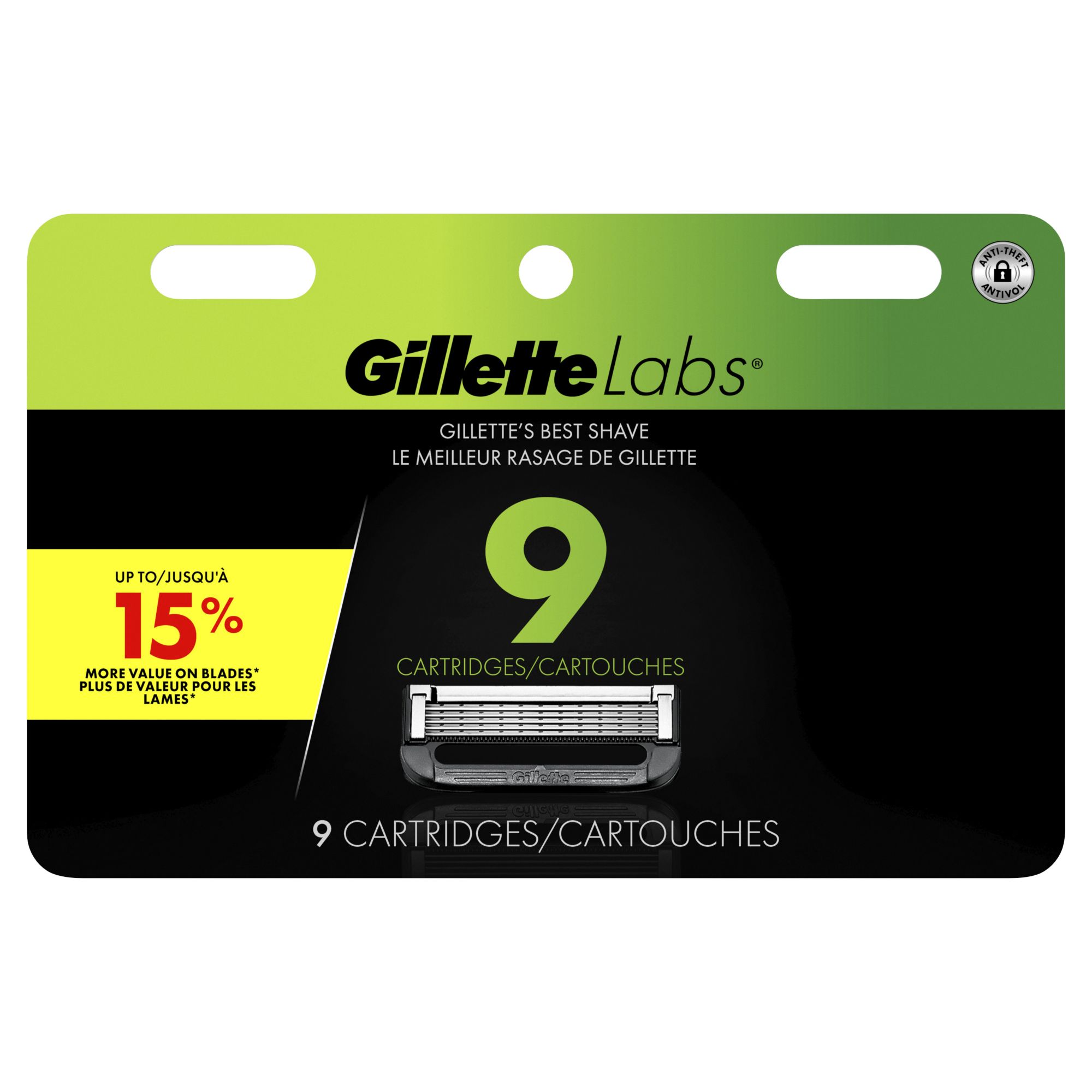 Includes nine razor blade refills for men