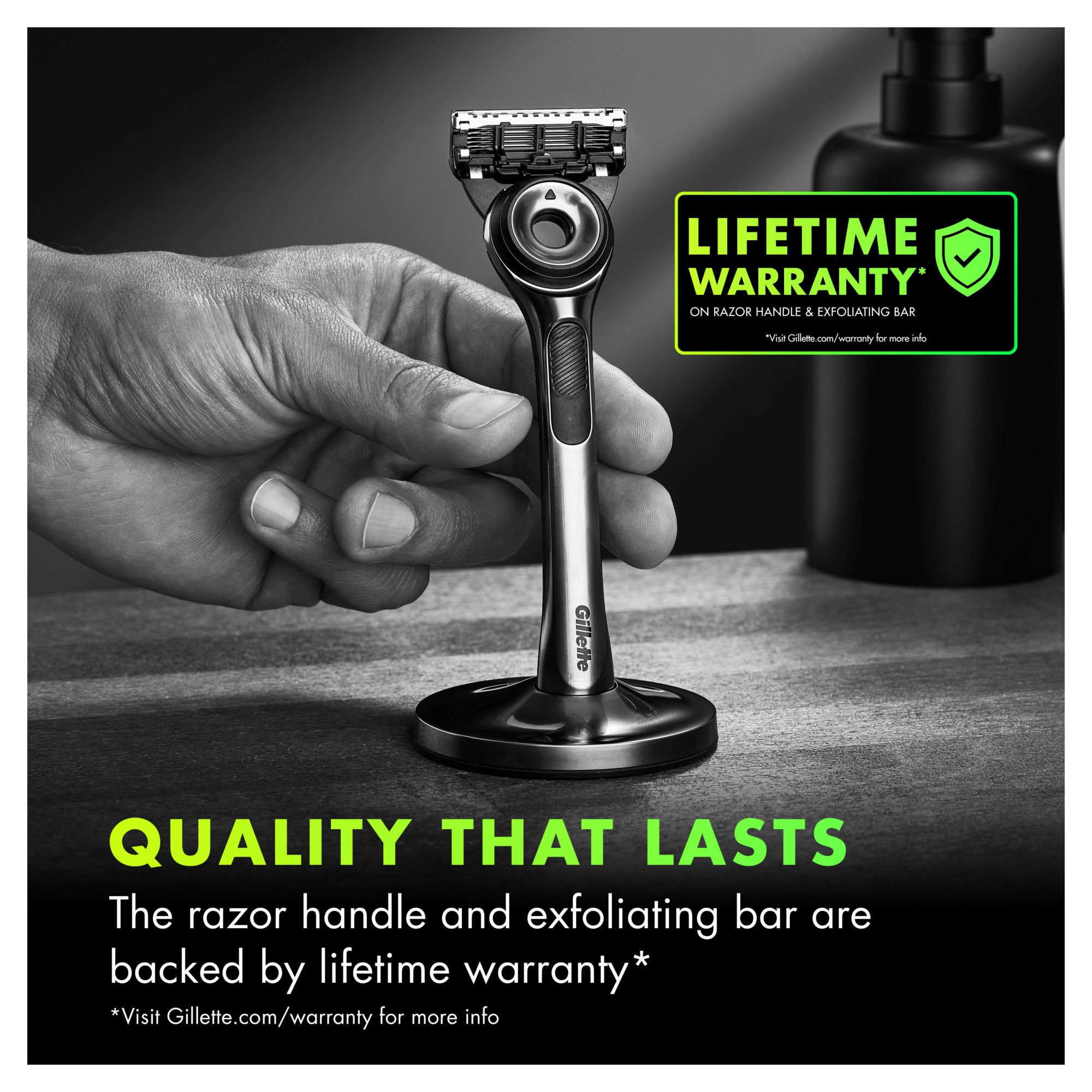Long-lasting durability: The razor handle and exfoliating bar are backed by a lifetime warranty*