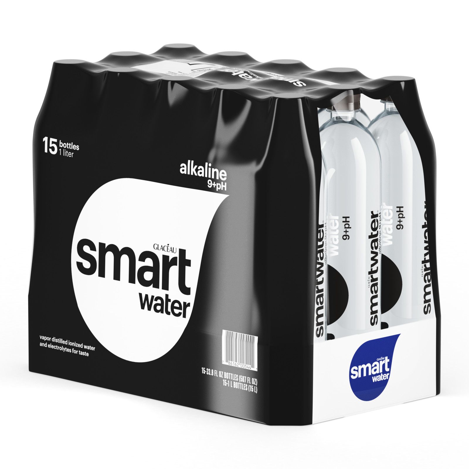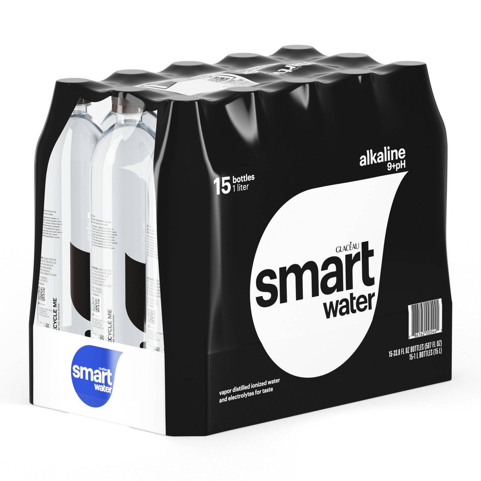 Glaceau Smartwater Alkaline, premium bottled water, every drop of smartwater alkaline tastes pure and will leave you feeling refreshed. It’s everything you want from bottled water—pure, hydrating and crisp. It might be the fact that it’s vapor-distilled through a process inspired by the clouds. Or the fact that we’ve added electrolytes for taste into every bottle. It might even be that it’s ionized to a 9+pH. Either way, you can bet on a premium water experience with every bottle. Active hydration for when you’re staying active. smartwater alkaline—a smart way to hydrate. One case of glaceau smartwater alkeline includes (15) 1-Liter 100% recyclable bottles.