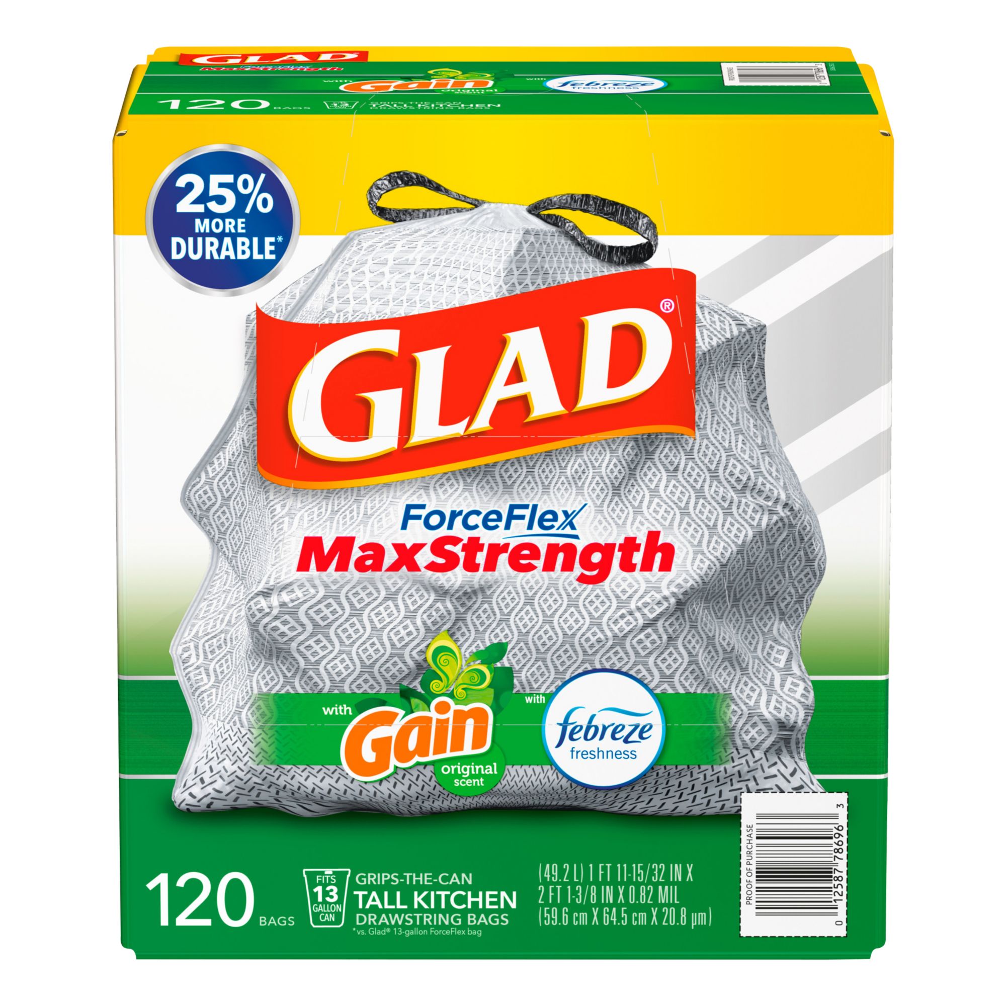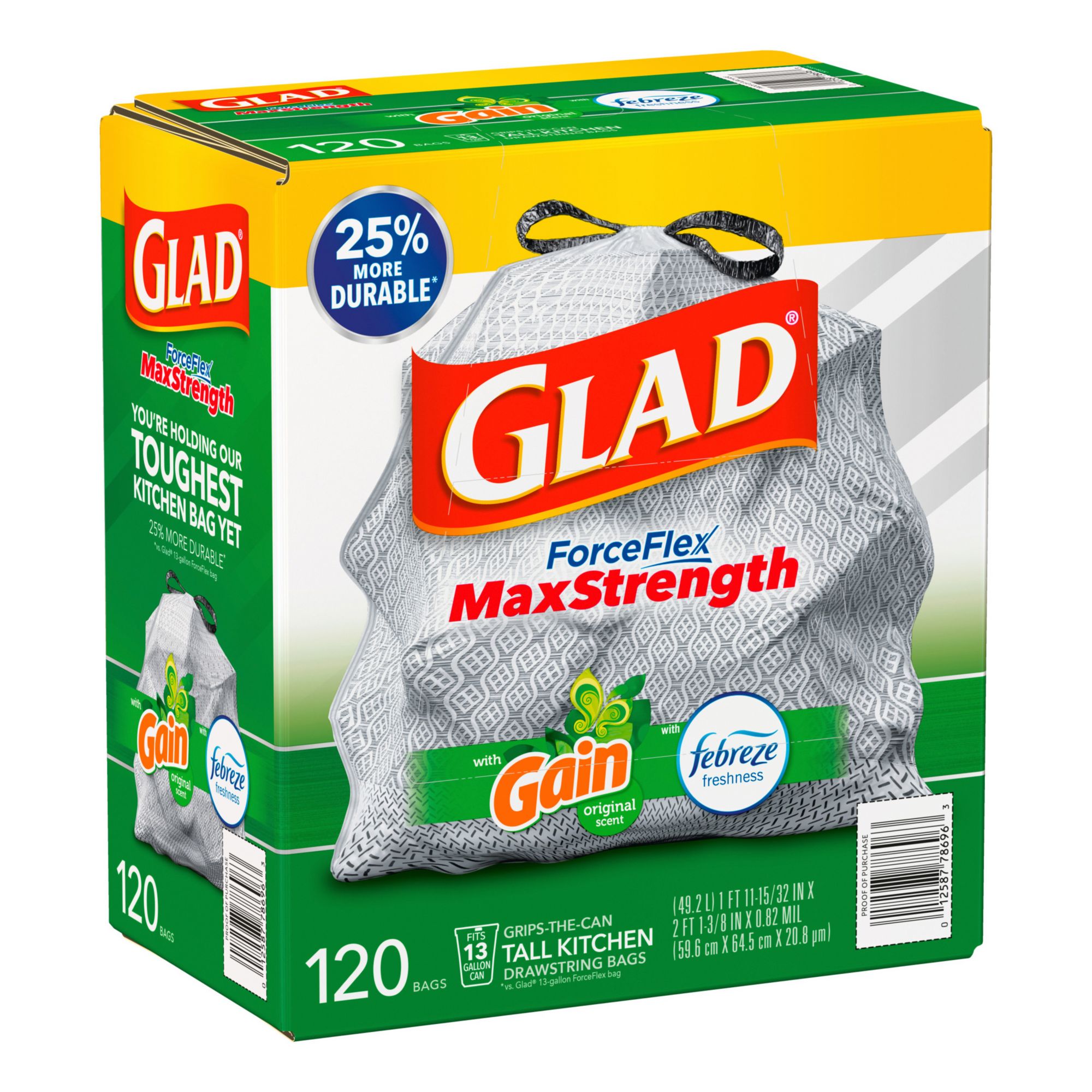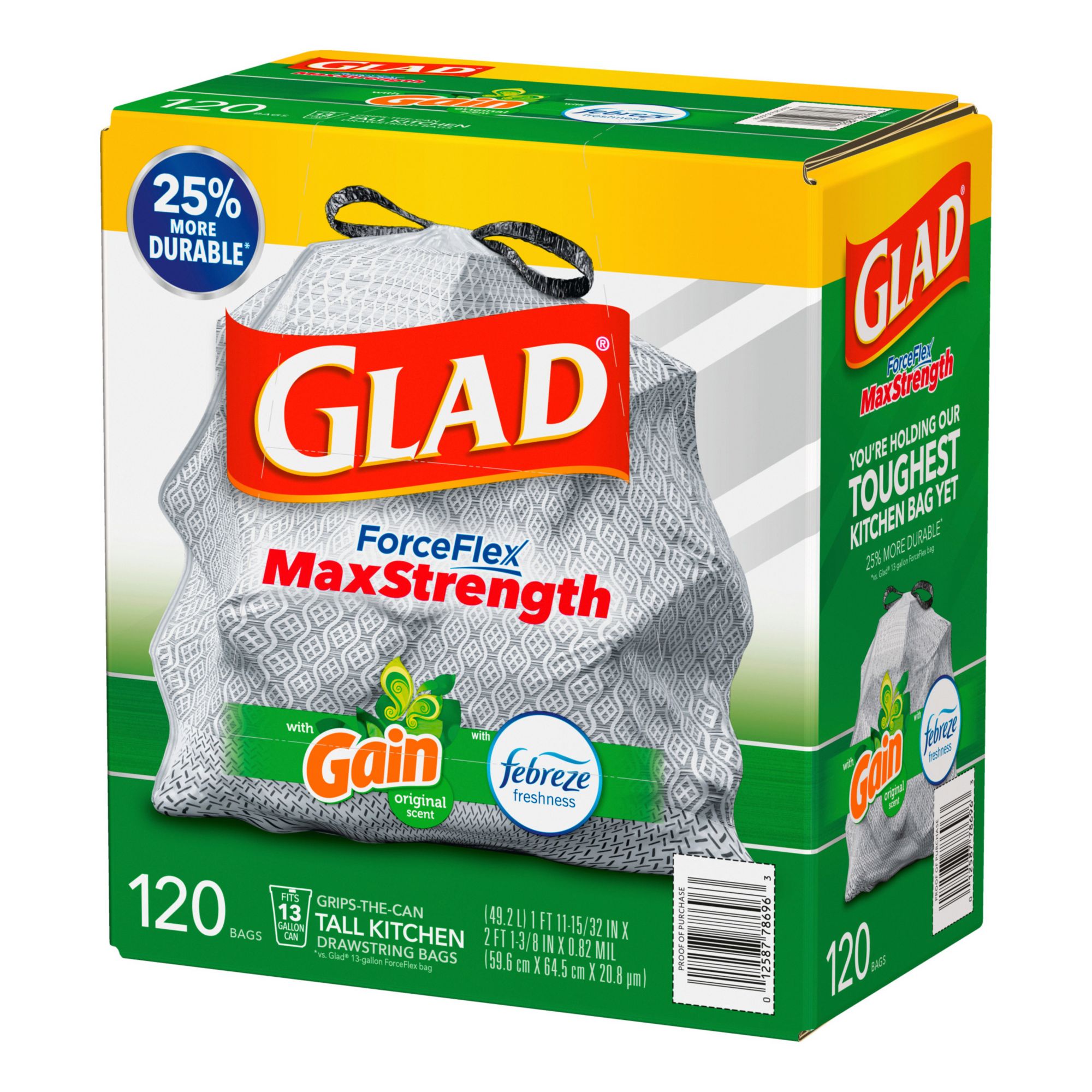 Glad ForceFlex MaxStrength Tall Kitchen Trash Bags - Gain Original with Febreze Freshness, 120 ct./13 gal.