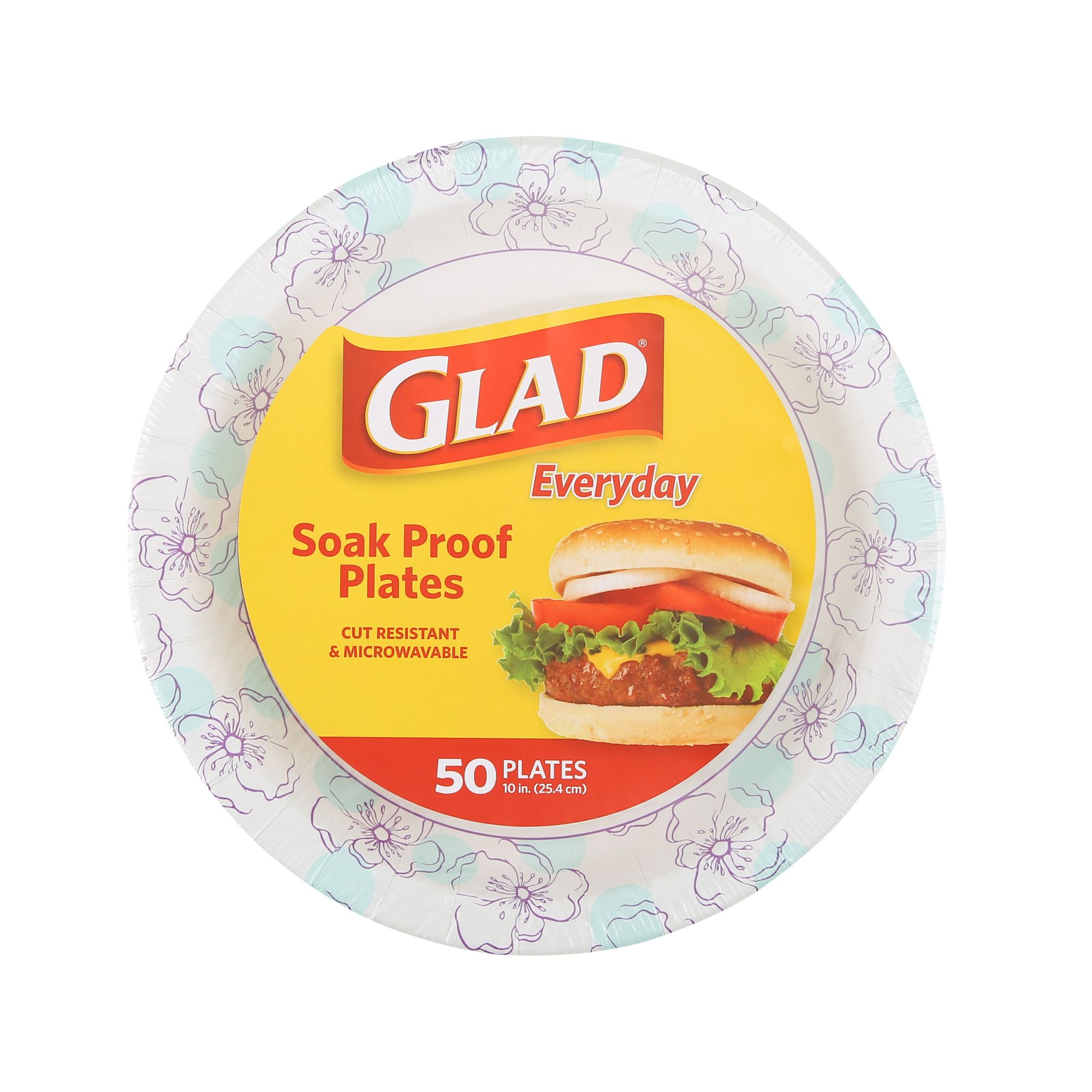 These disposable plates are microwave safe and cut resistant Glad round plates can be used for your appetizer or main course Glad blue and white paper plates are coated with our exclusive soak proof coating to keep even the messiest foods from penetrating the surface These round paper plates are durable and convenient Say goodbye to washing dishes when you use these disposable decorative paper plates Convenient paper plates will enhance your dinner party, summer picnic, or any meal time