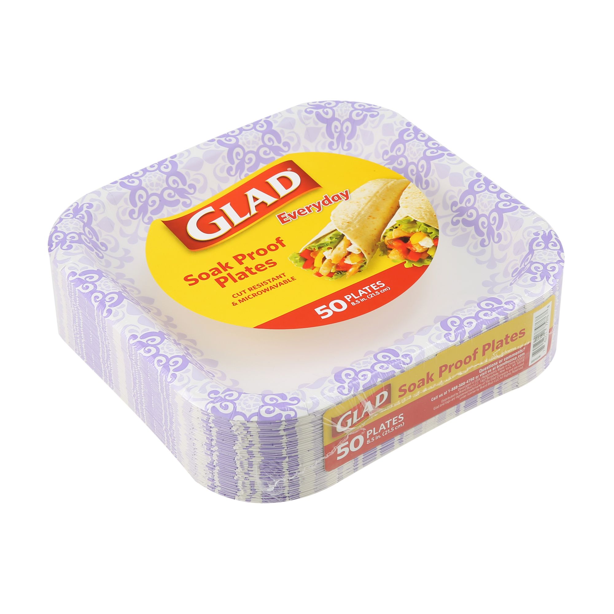These plates are currently transitioning to an updated design Glad purple paper plates are coated with our exclusive soak proof coating to keep even the messiest foods from penetrating the surface These square paper plates are durable and convenient Convenient paper plates will enhance your dinner party, summer picnic, or any meal time