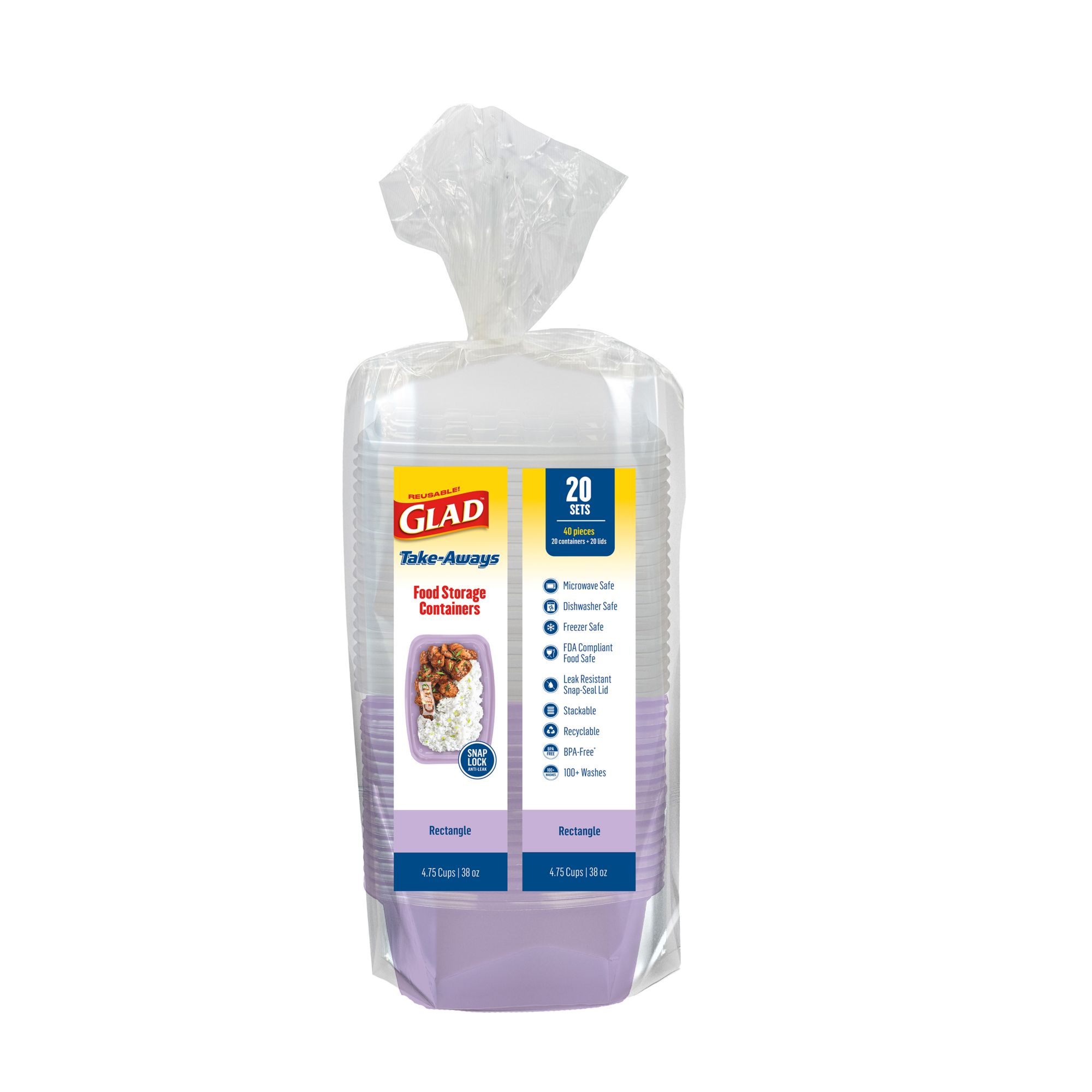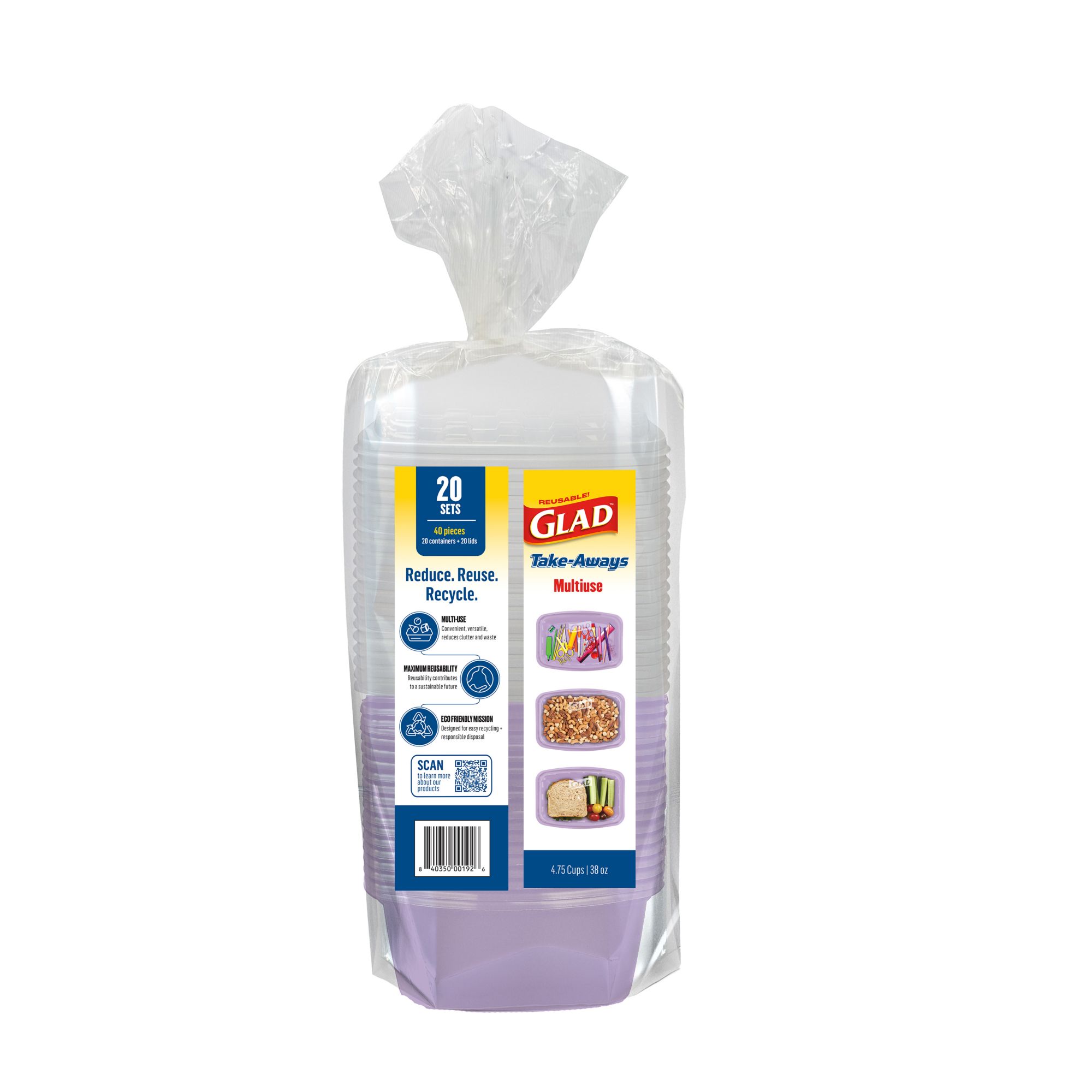 Glad Take-Aways Rectangular Food Storage Containers, Purple Lavender Breeze, 38 oz./40-Pc. Set