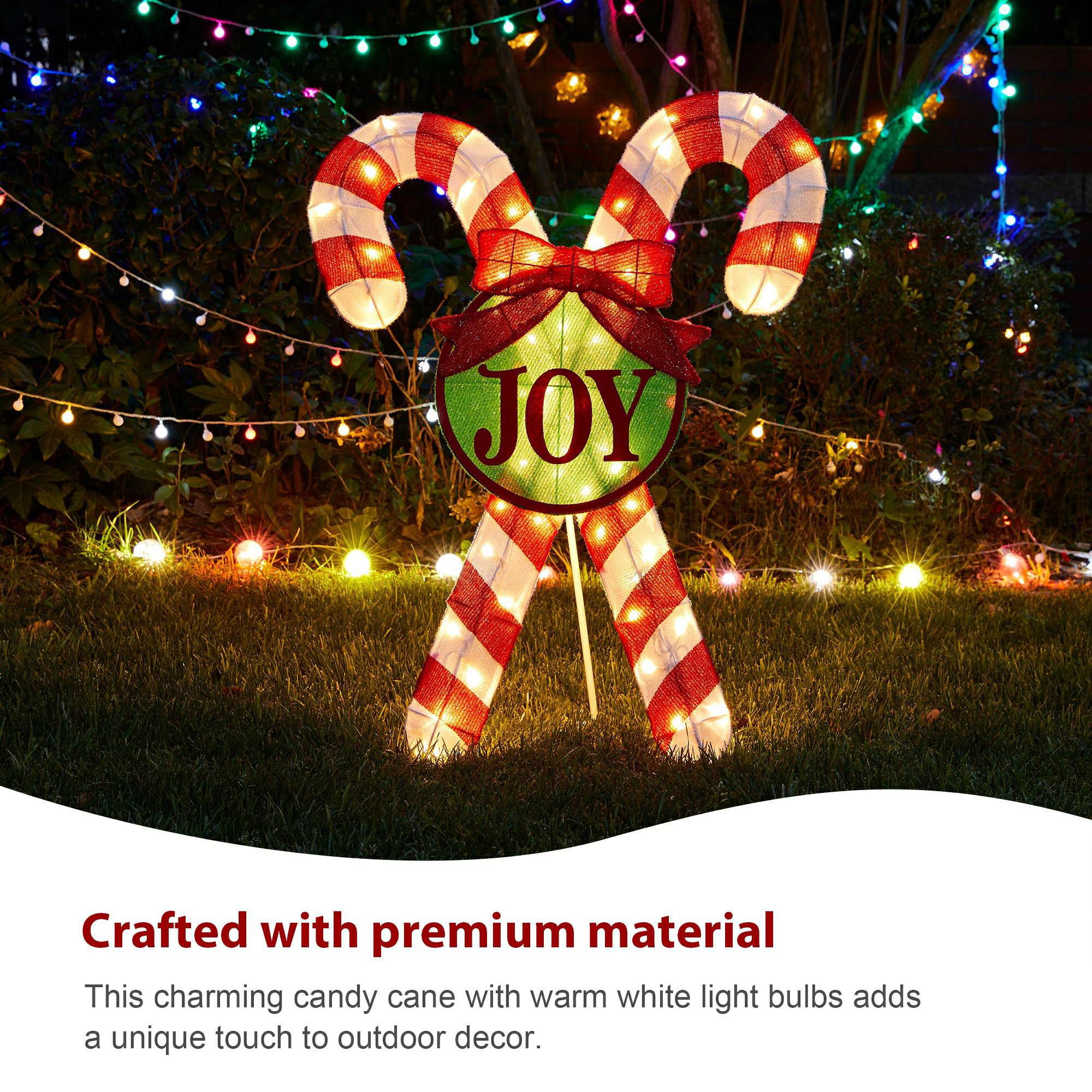 Perfect Size: Measuring 28.25”L x 2.75”W x 35.5”H, this candy cane is ideal for enhancing your Christmas decorations, both indoors and outdoors.