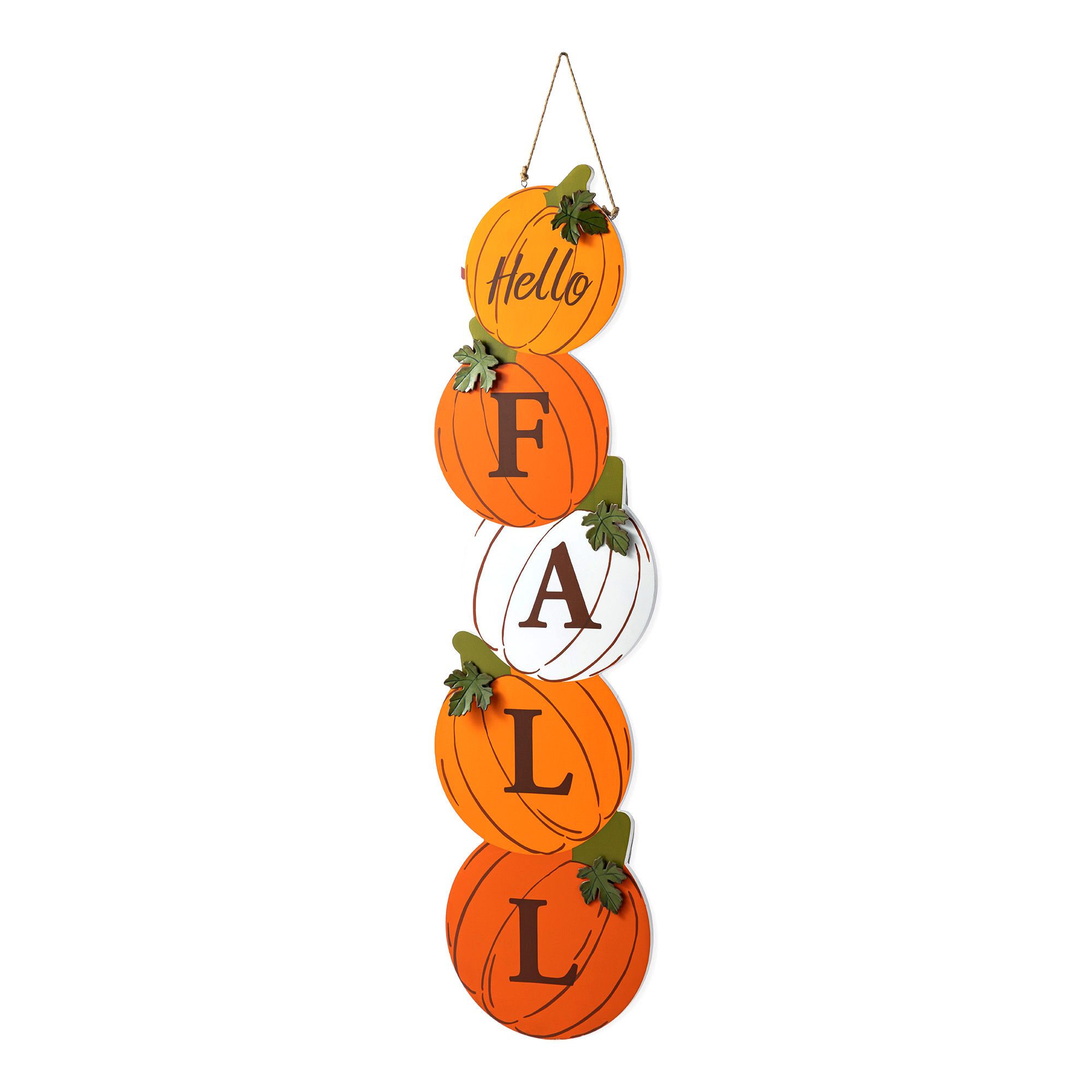 Celebrate two seasons with one elegant decoration. This double-sided wooden and iron sign features a cheerful "Hello" and "Fall" pumpkin design on one side, and a festive "Joy" ornament display on the other. Its durable construction ensures lasting use, while the versatile design easily transitions from autumn to Christmas. Perfect for porches, gardens, or walls, this piece offers a simple and charming way to welcome guests throughout the holiday season.