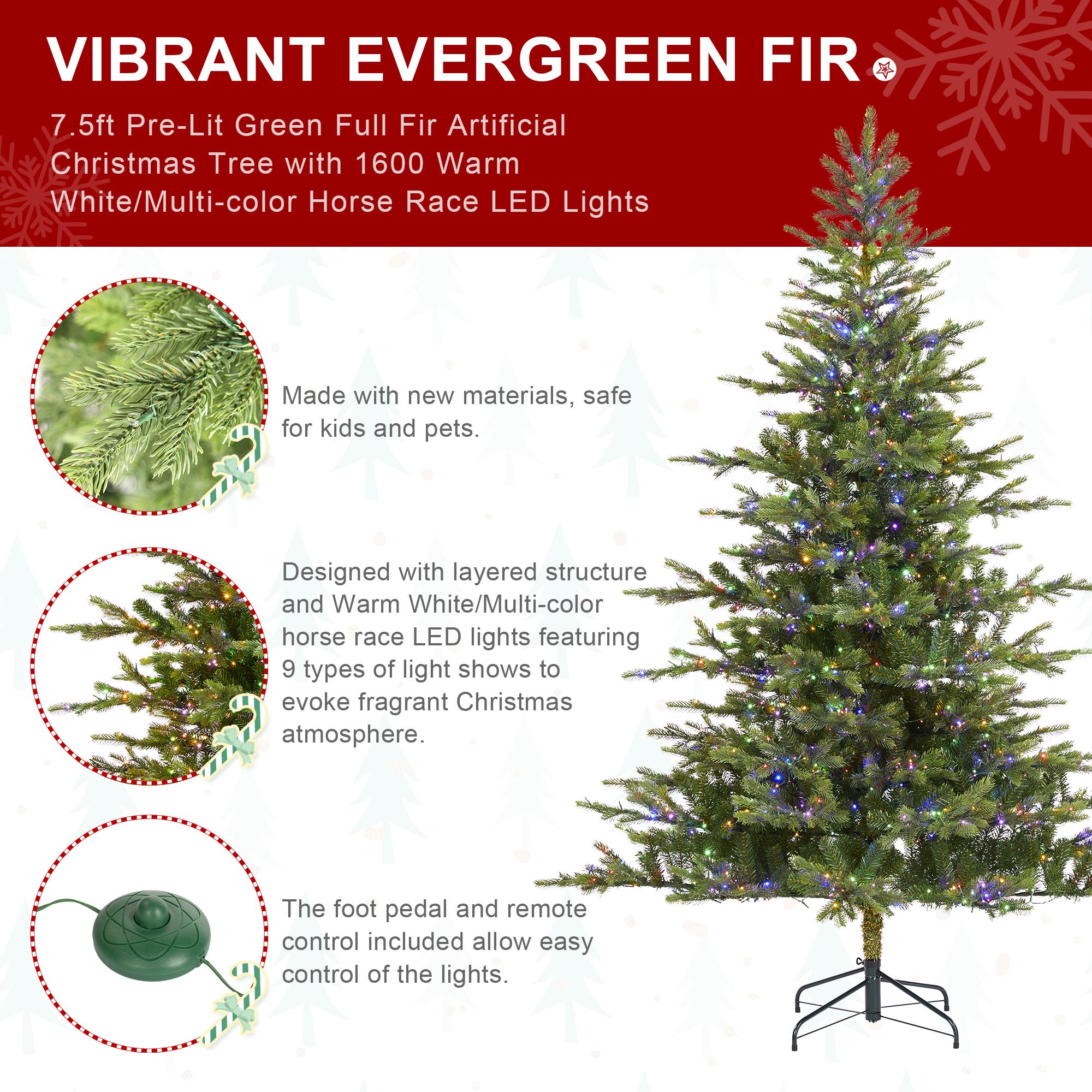 Glitzhome 7.5' Pre-Lit Full Fir Xmas Artificial Christmas Tree