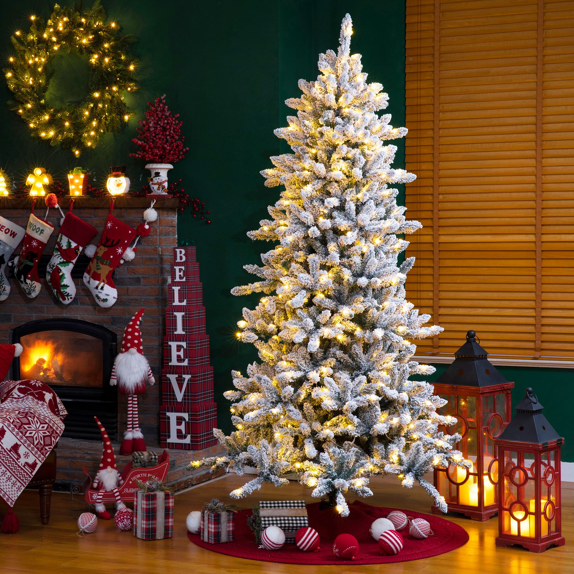 Premium snow flocked finish - Expertly crafted with heavy snow flocking and iridescent glitter for a magical winter wonderland aesthetic throughout your home. Each piece may feature slight glitter falling off