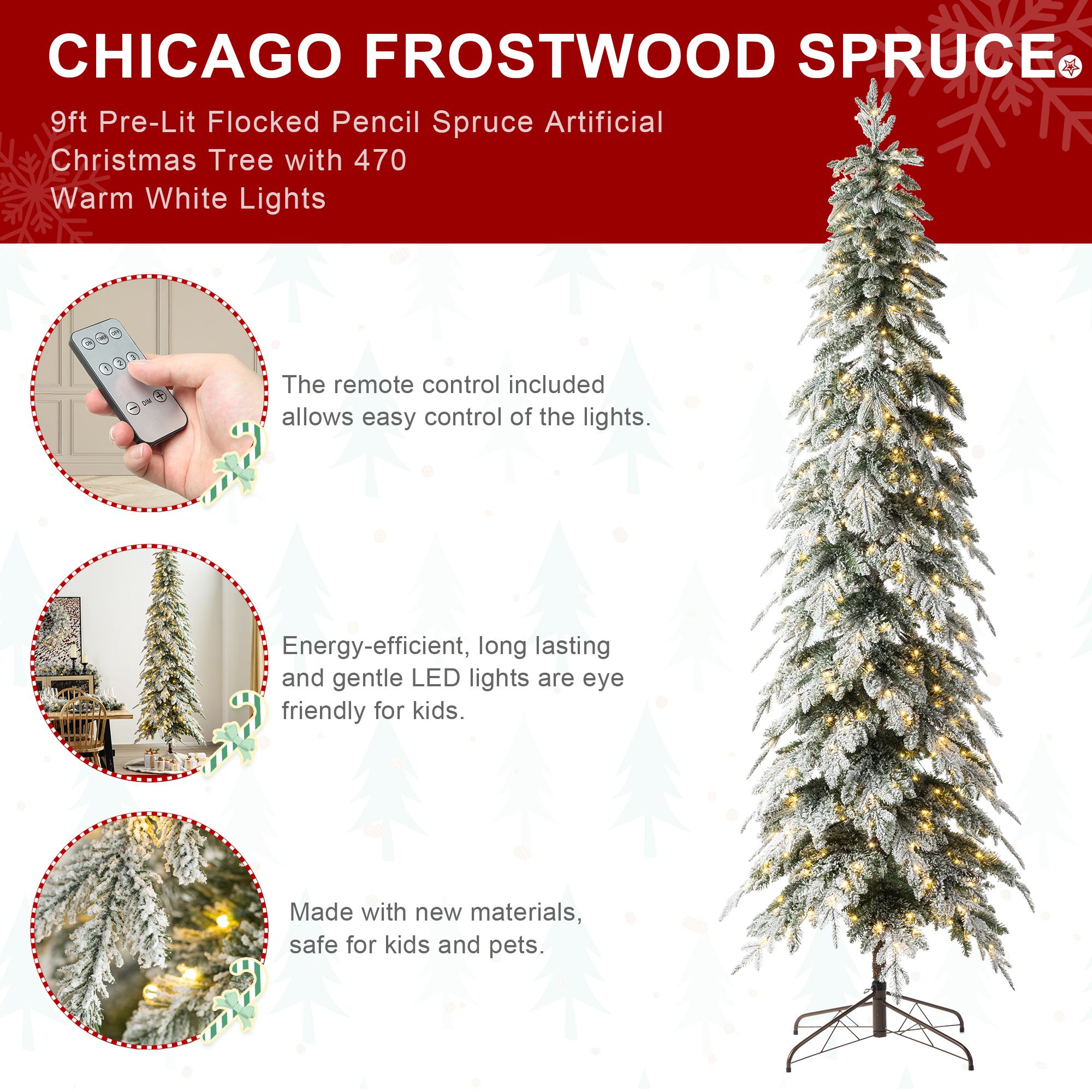 Glitzhome 9' Pre-Lit Chicago Frostwood Flocked Pencil Christmas Tree