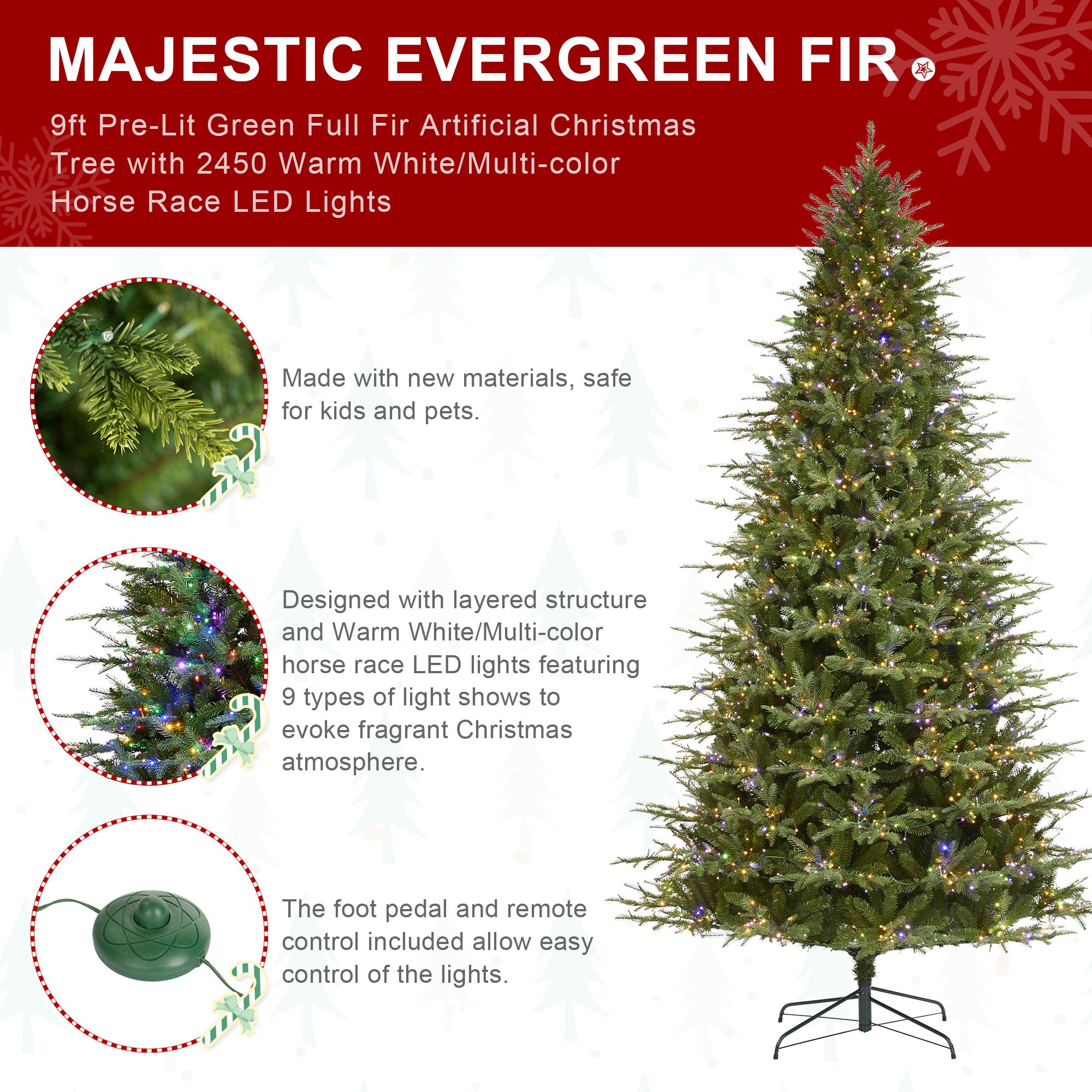 Glitzhome 9' Pre-Lit Full Fir Christmas Tree with Remote