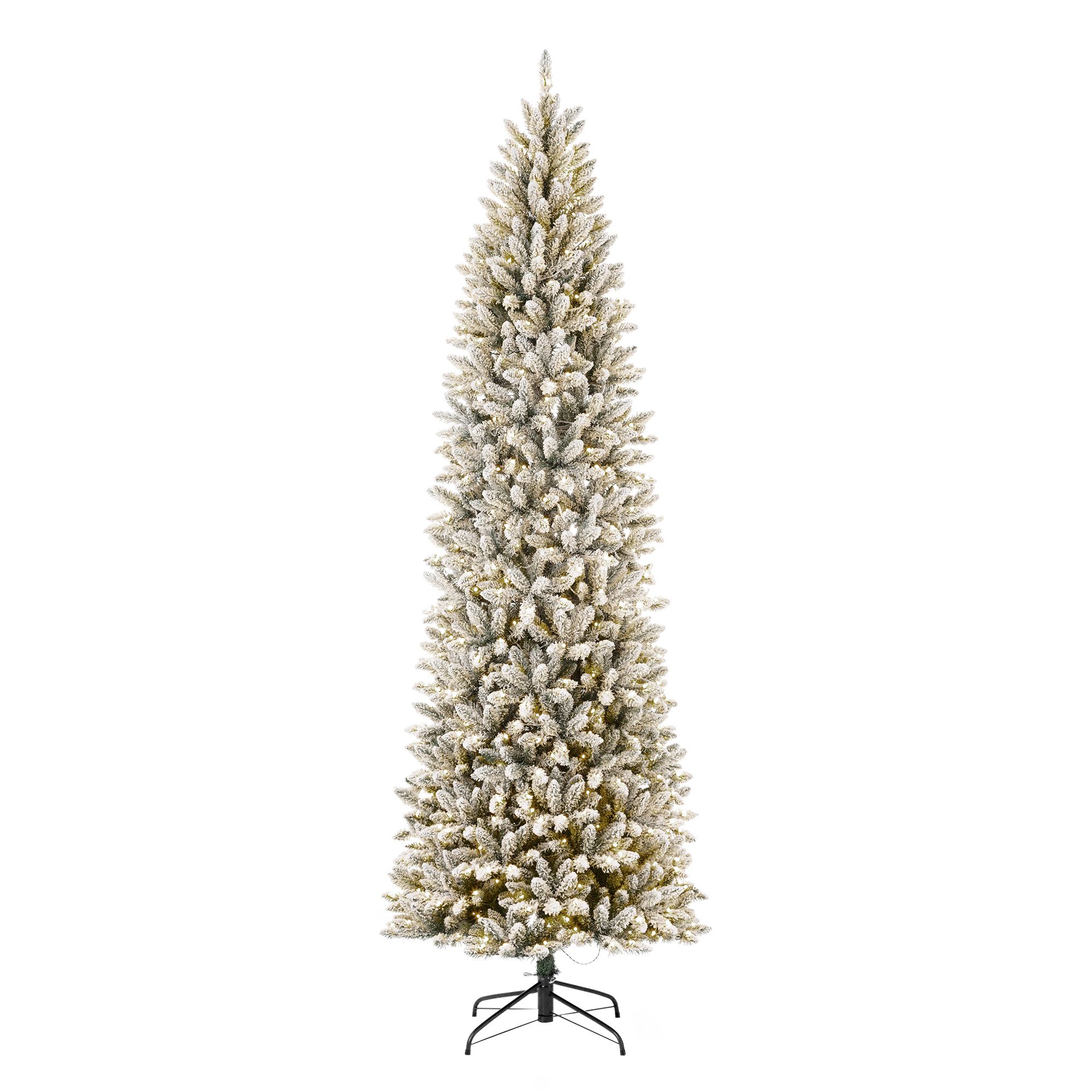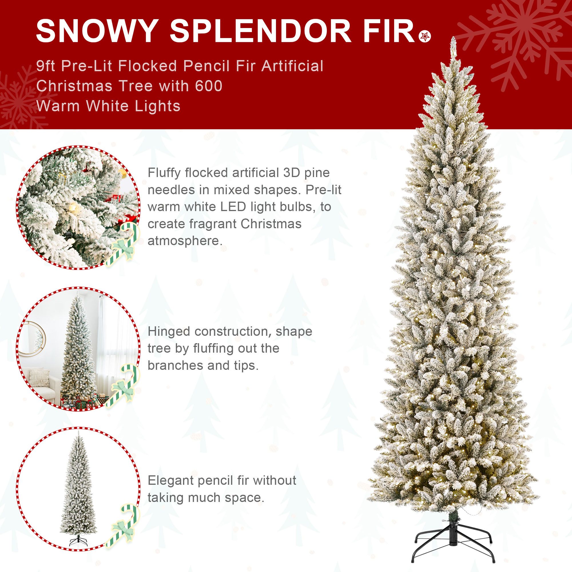 Glitzhome 9' Pre-Lit Snowy Splendor Flocked Fir Hinged Christmas Tree