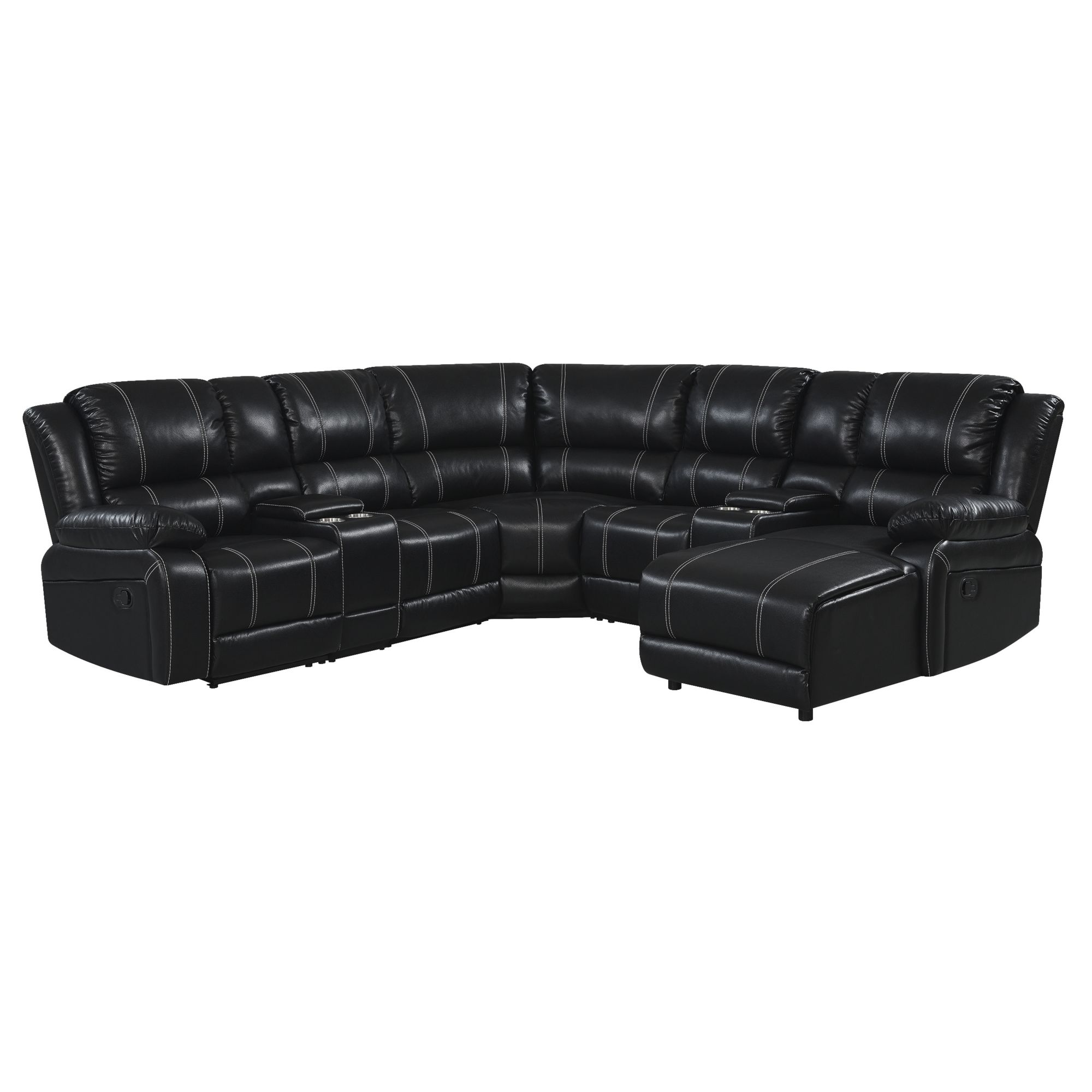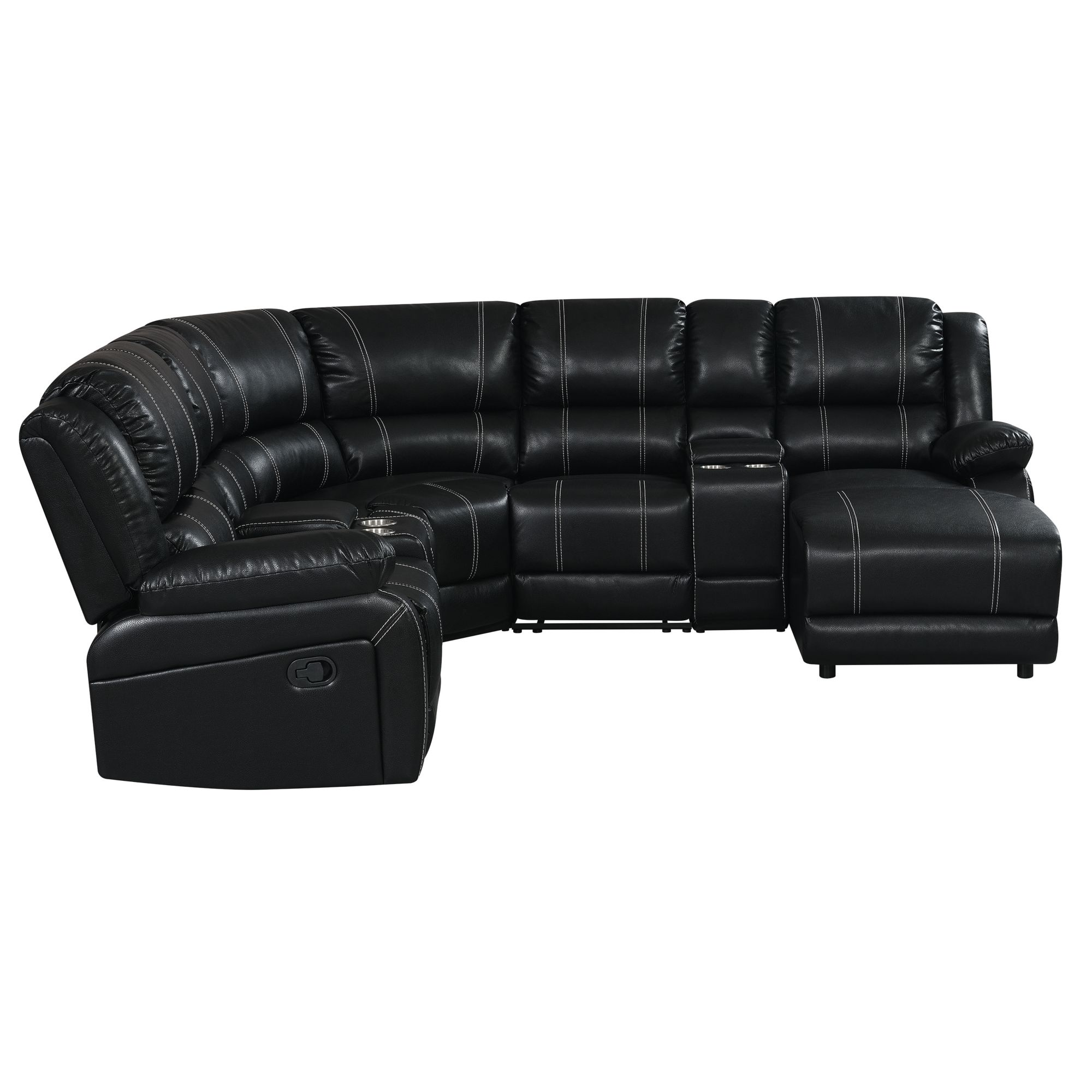 This sectional offers the best of all worlds. It has a high-performance leather-like fabric that offers comfort and durability. It has a left-side facing reclining end and a connected console table with lift-top storage and cup holders. The right side offers a chaise and attached console table with a lift-top storage space and cup holders. The recline and chaise offering in one unit is a great combination for all living spaces.