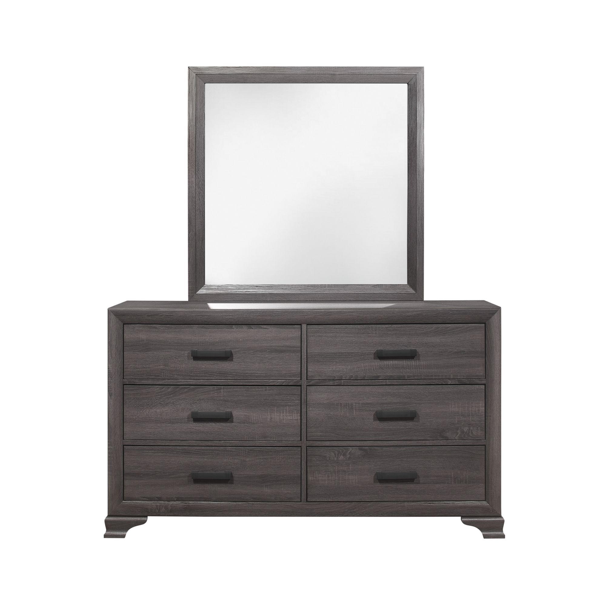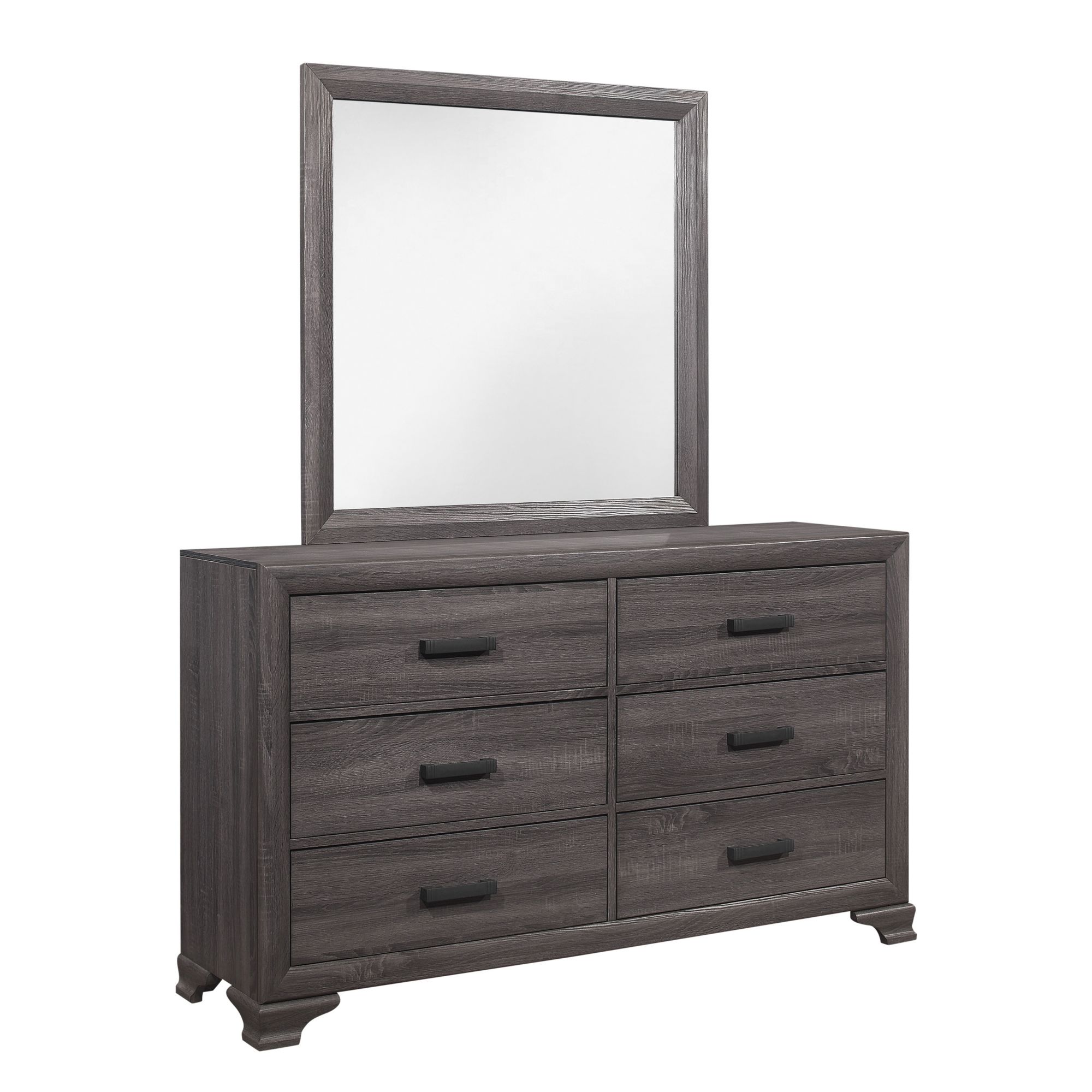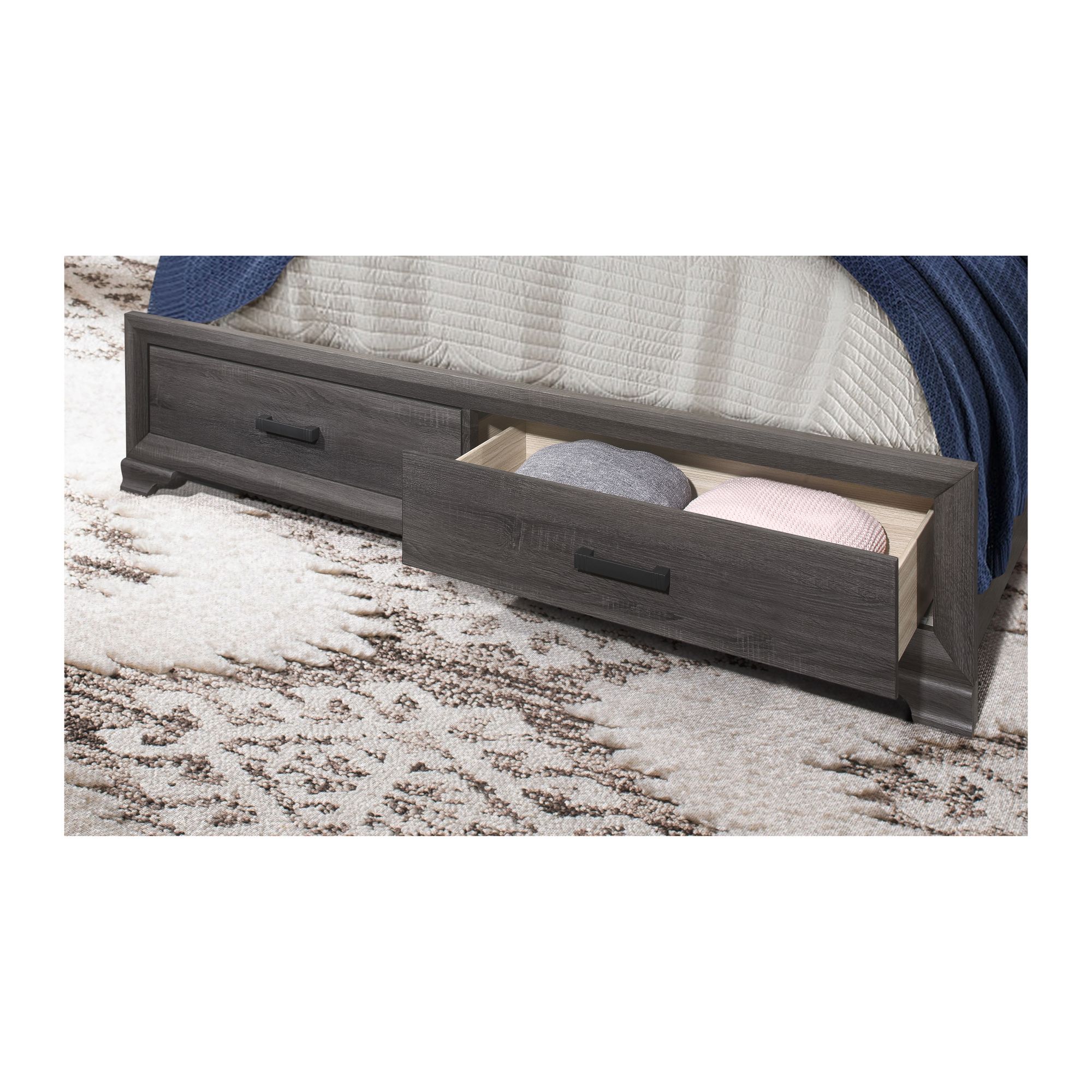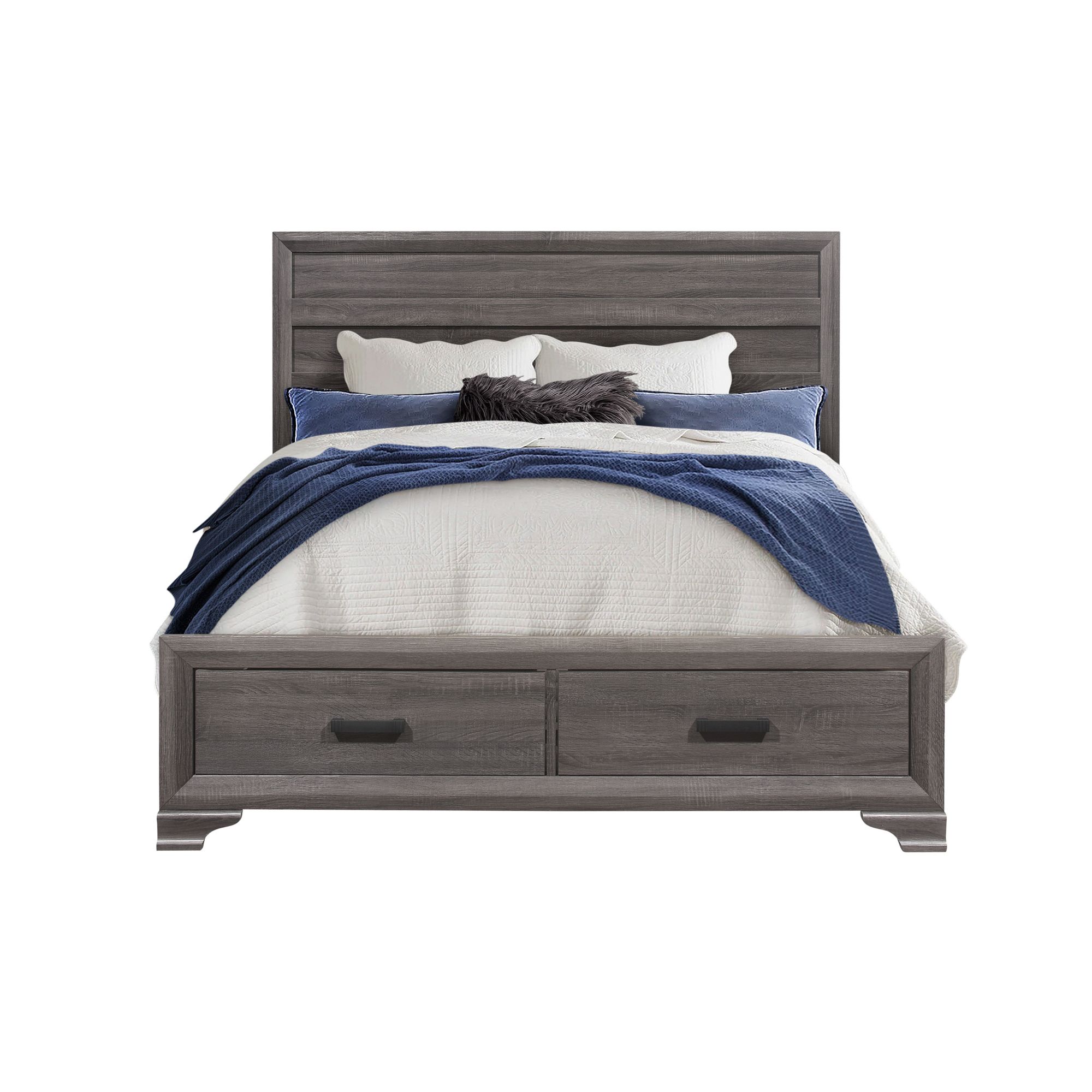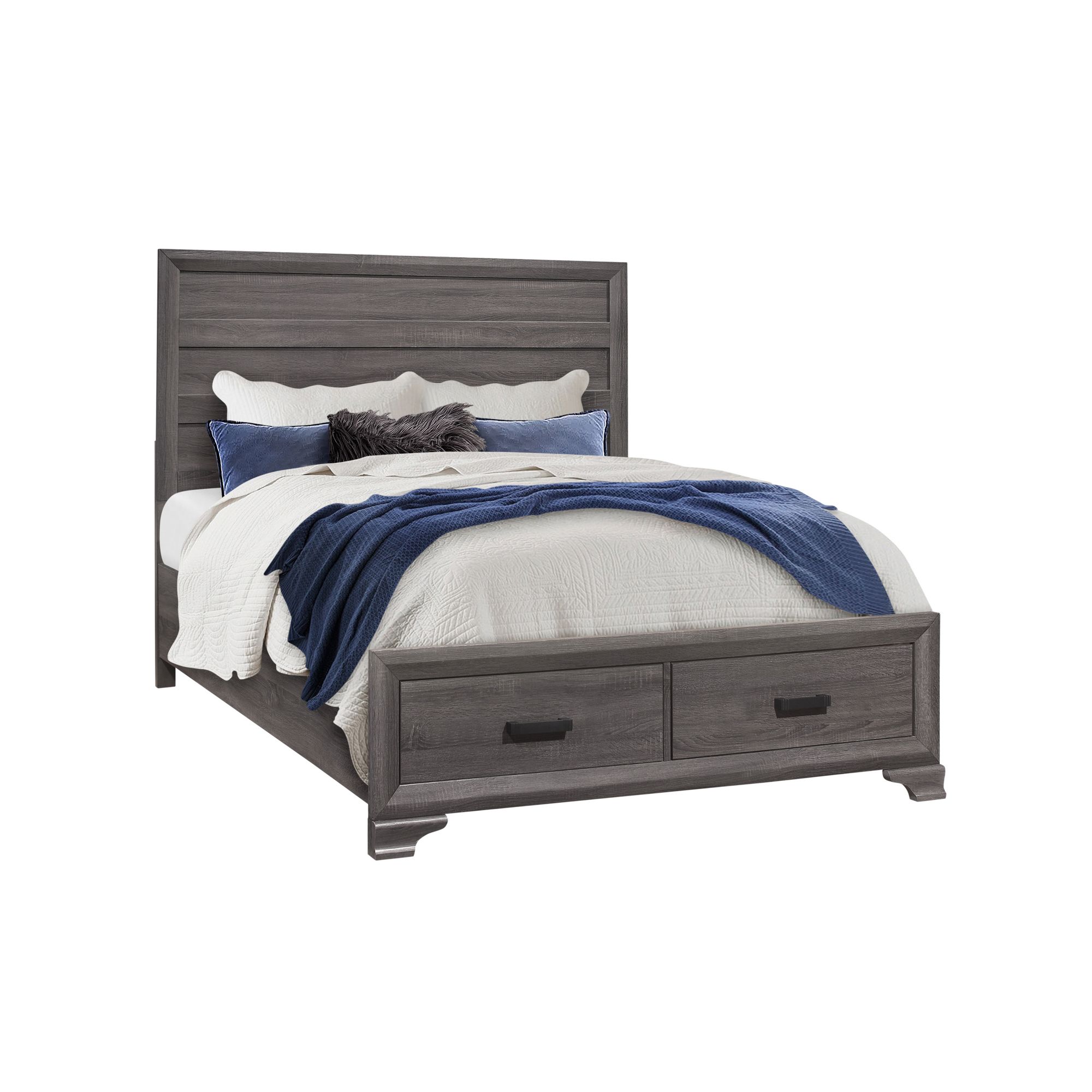The Ryan bedroom collection offers a transitional look with a grey wash finish, full-picture framed cases, and platform feet. The bed offers two-drawer footboard storage for added space. The rest of the case pieces are full-size with design and space.