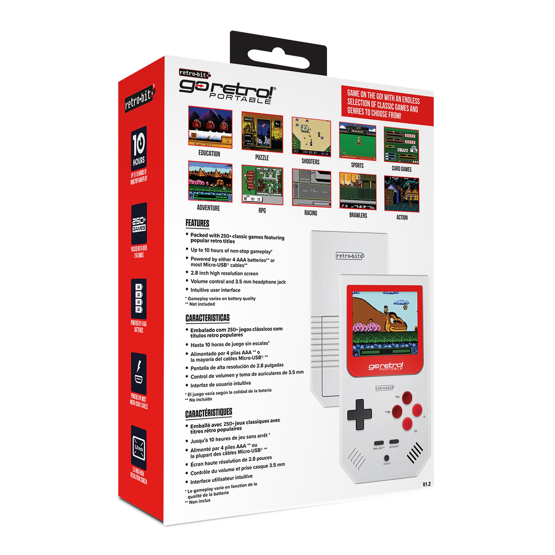Packed with over 250+ retro games featuring popular classics and Data East titles Up to 10 hours of non-stop gameplay Powered by either 4/AAA batteries or most Micro-USB cables 2.8" high resolution screen Volume control and 3.5mm headphone jack Includes portable game player, operating instructions, and AC power adapter