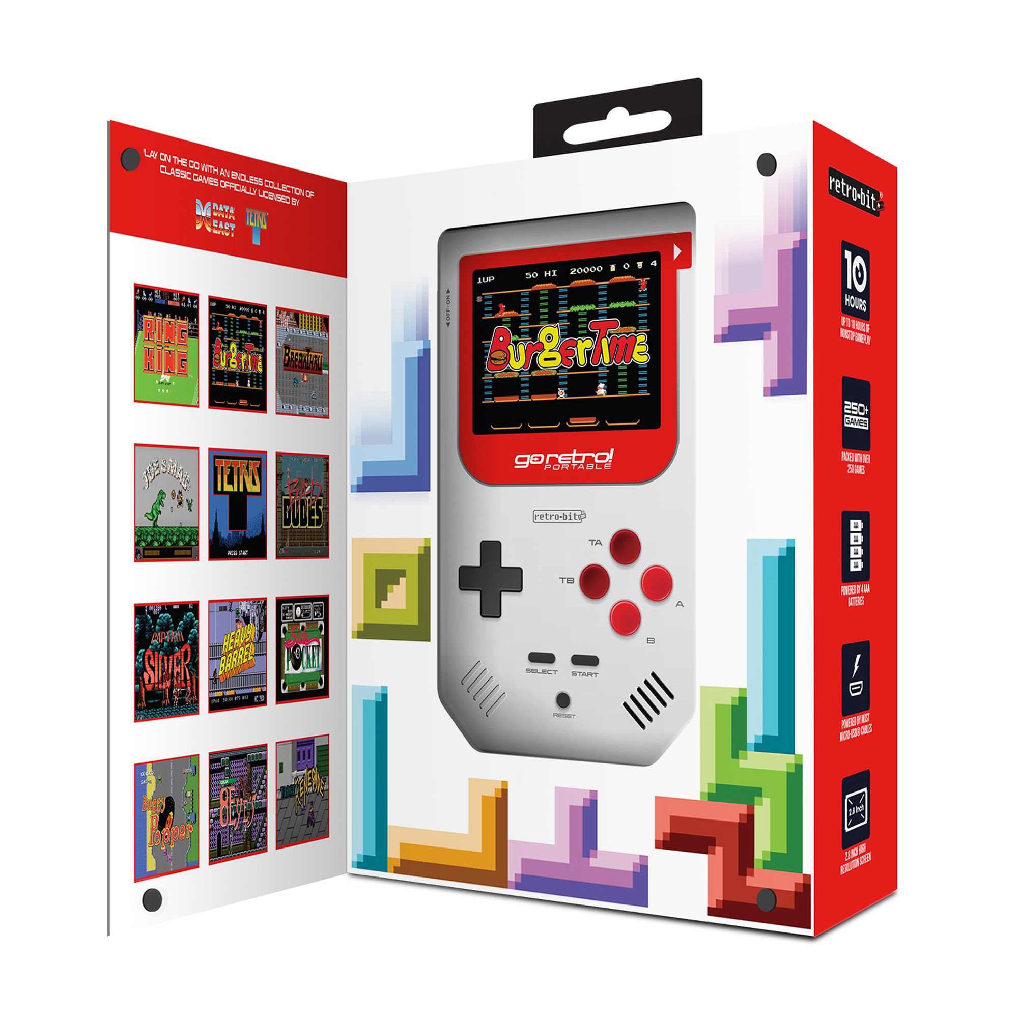 Game on the go with the GO RETRO! Portable Game Player. Enjoy up to 10 hours of nonstop gameplay anywhere and anytime. Packed with over 250 games featuring Tetris, Mega Man 2, Mega Man 3, BurgerTime, Strider, 1942, Bad Dudes, and More. The GO RETRO! Portable Game Player will make the perfect gift.