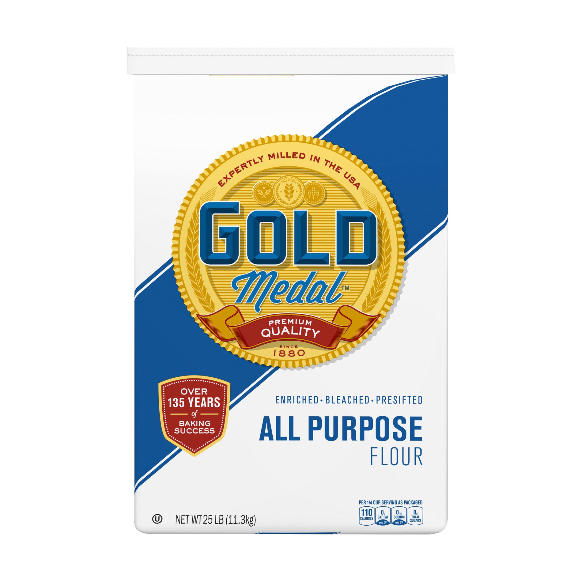 Gold Medal All Purpose Flour is the perfect companion in the kitchen. This versatile flour is strong enough for high-rising bread and mellow enough for your favorite pie crust. It can be used anytime a recipe calls for flour. A blend of pure white hard and soft wheat means every baked bite looks and tastes its absolute best. It can be used in recipes from breads to pizza dough and cookies to cakes. Presifted to help you get to the mixing bowl sooner. This 25 pound bag is convenient whether you're a small business owner crafting large batches of food, or you're whipping up something big for a celebration. Choose our flour as your go-to ingredient for flawless taste and texture. Gold Medal has over 135 years of baking success. We mill the flour that people rely on to make everything from family favorites to new and inspired creations. We put our best into everything we do - so you can too.