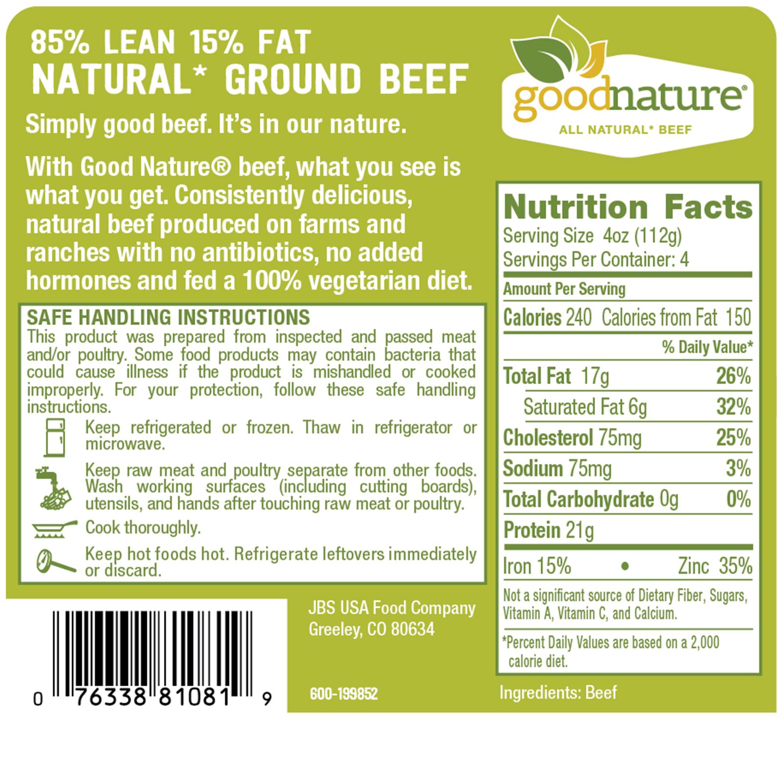 85% Lean ground beef All natural No antibiotics