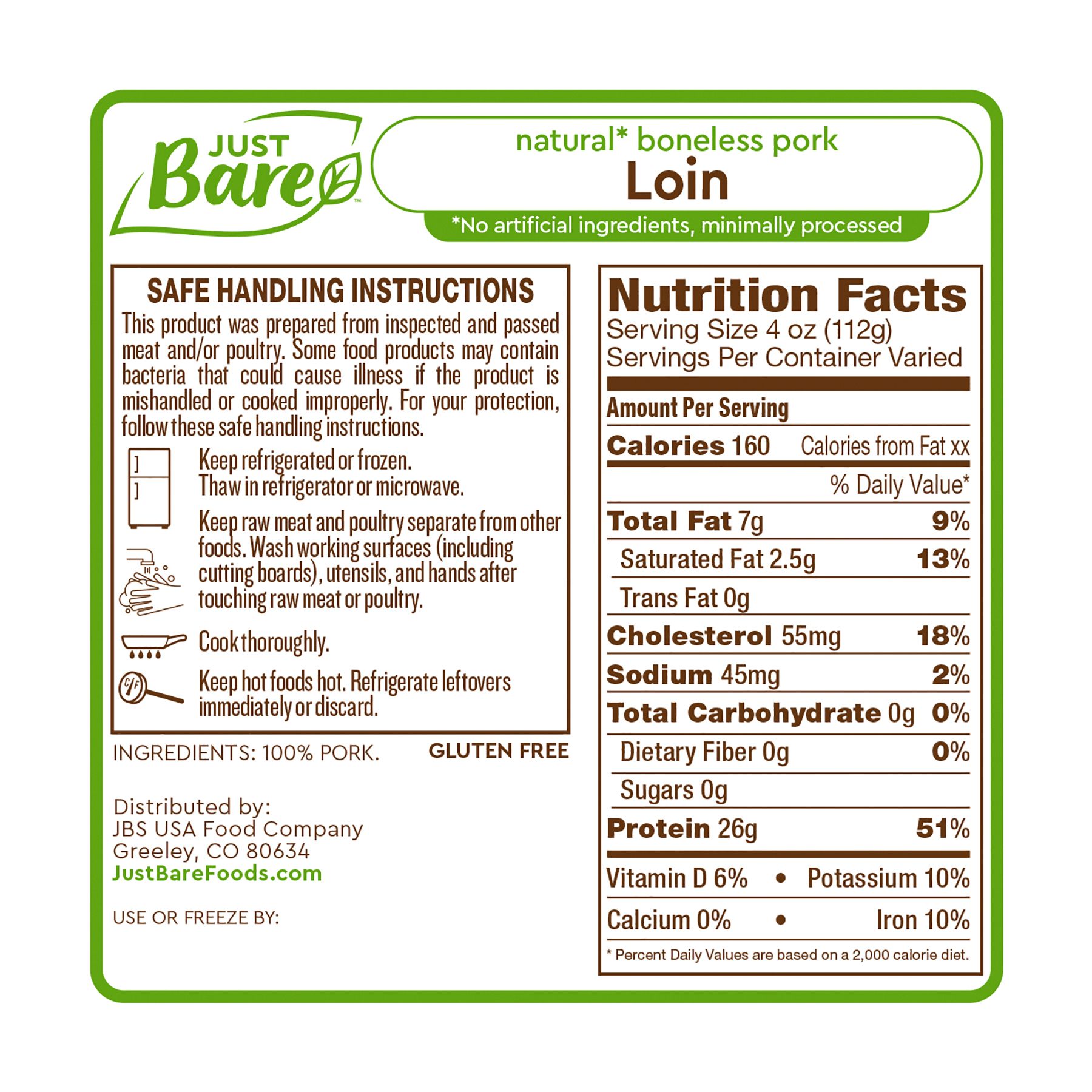 Boneless pork loin without any growth stimulants or antibiotics. This pork loin adds a health option and flavorful taste to your meals.