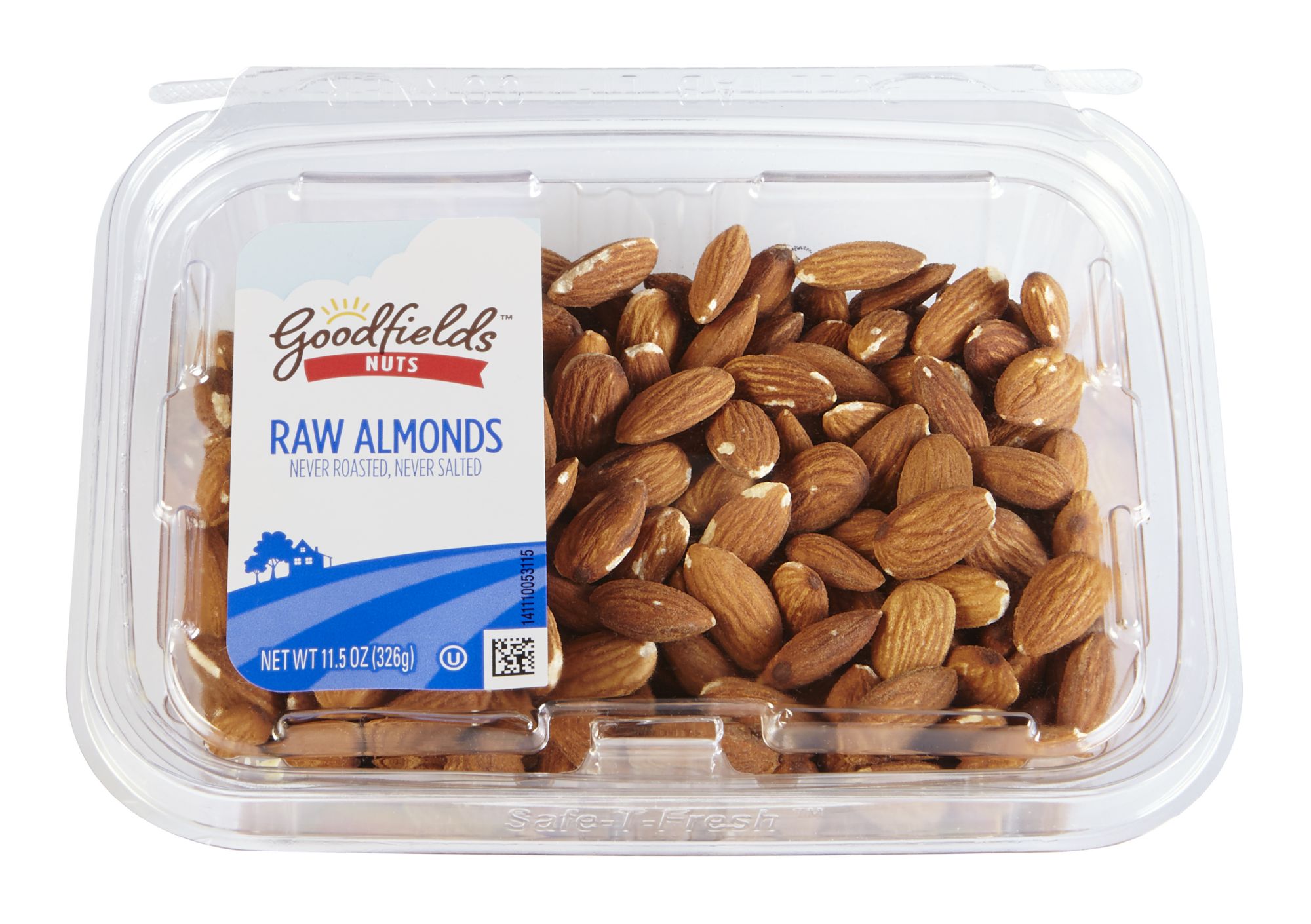 Get back to basics when you snack on some Goodfield's 11.5 Oz. Raw Almonds. These almonds are not salted or roasted to retain their natural flavor and they're a great source of protein.