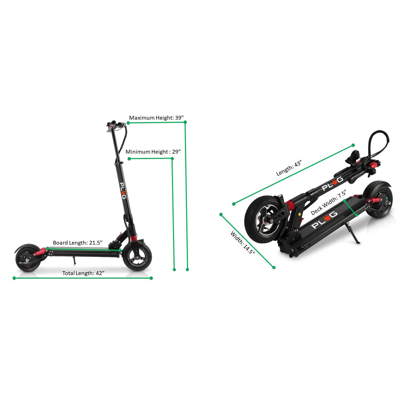 The revolutionary Plug City will quickly become your loyal partner on the go. With a high-capacity battery, the scooter moves at a speed of up to 22mph so you'll always arrive on time when traveling to school or work. The safe ride is guaranteed by the highly durable combination of electronic and drum brakes for immediate and easy stopping. When you arrive at your destination.
