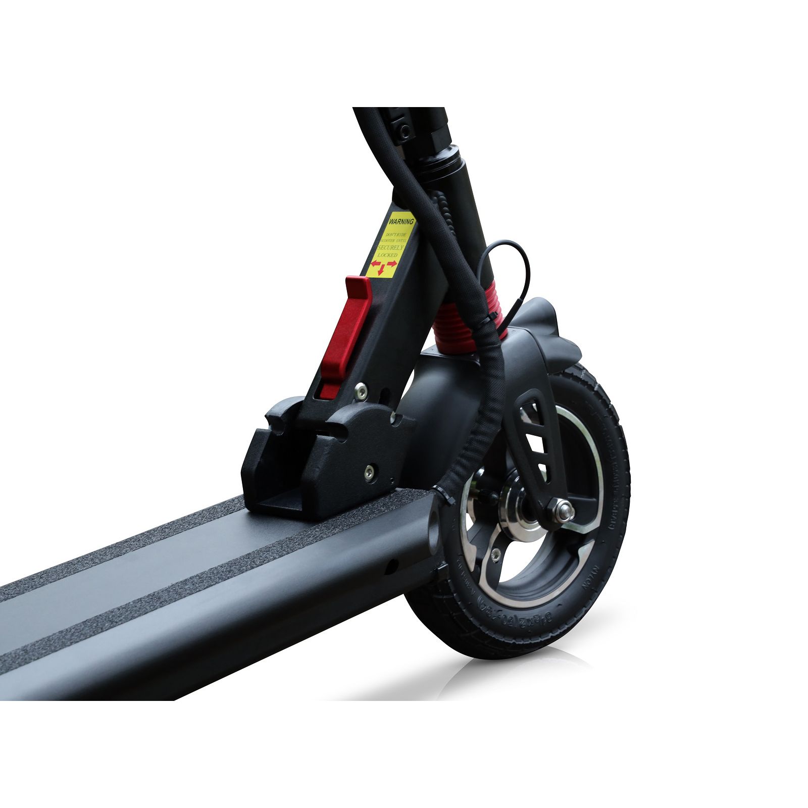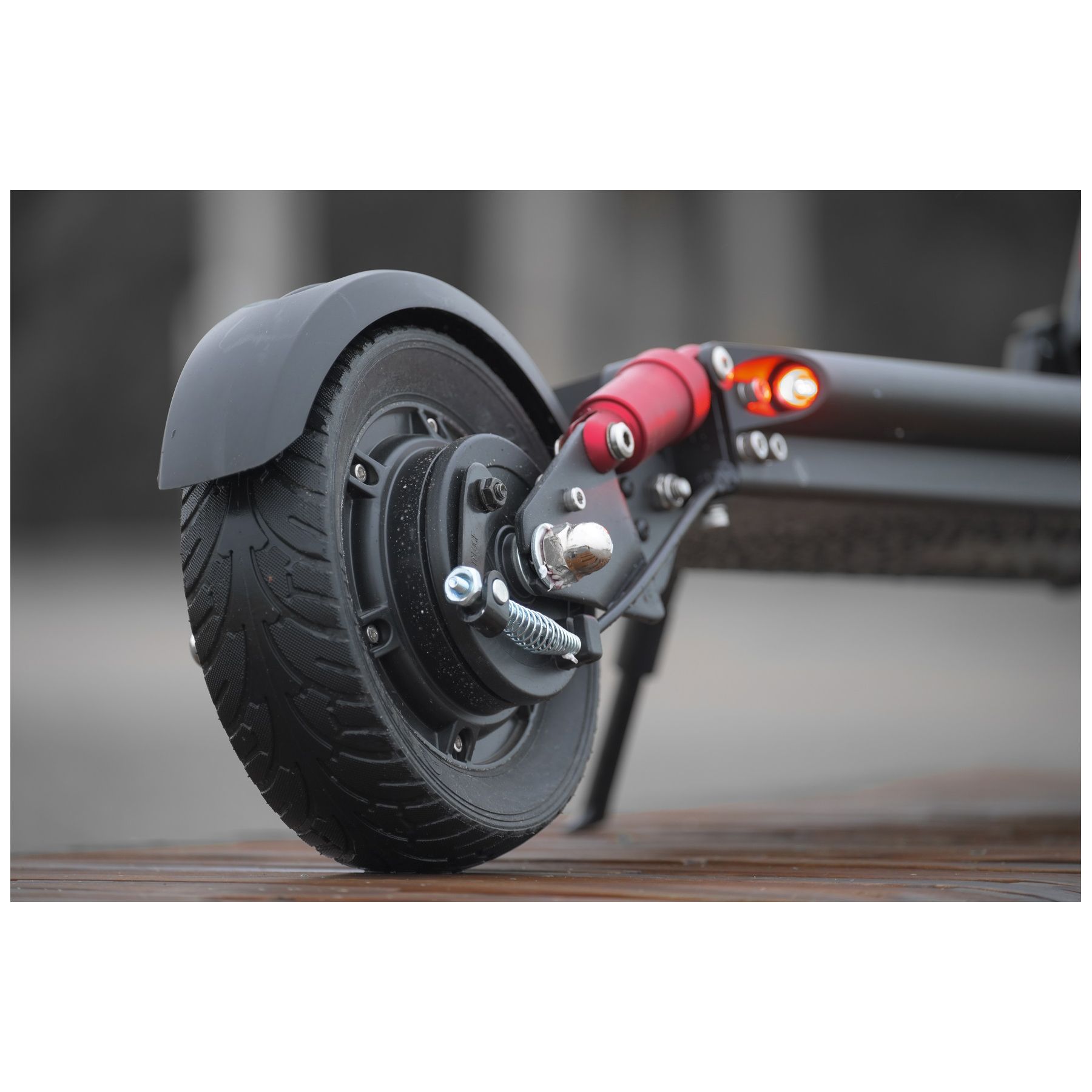 Motor: 500W motor Battery: 48V10-Ah Lithium battery (4 hours charge time) Durable 6061 aluminum alloy frame and folding handlebars Display: LCD with speedometer, odometer, gear indicator, battery gauge and USB charging Weight Capacity: 225 lbs. Integrated headlight and taillight controlled at your fingertips Front spring and rear hydraulic suspension Tires: 8.5" and 8" solid rear tire Includes electric scooter