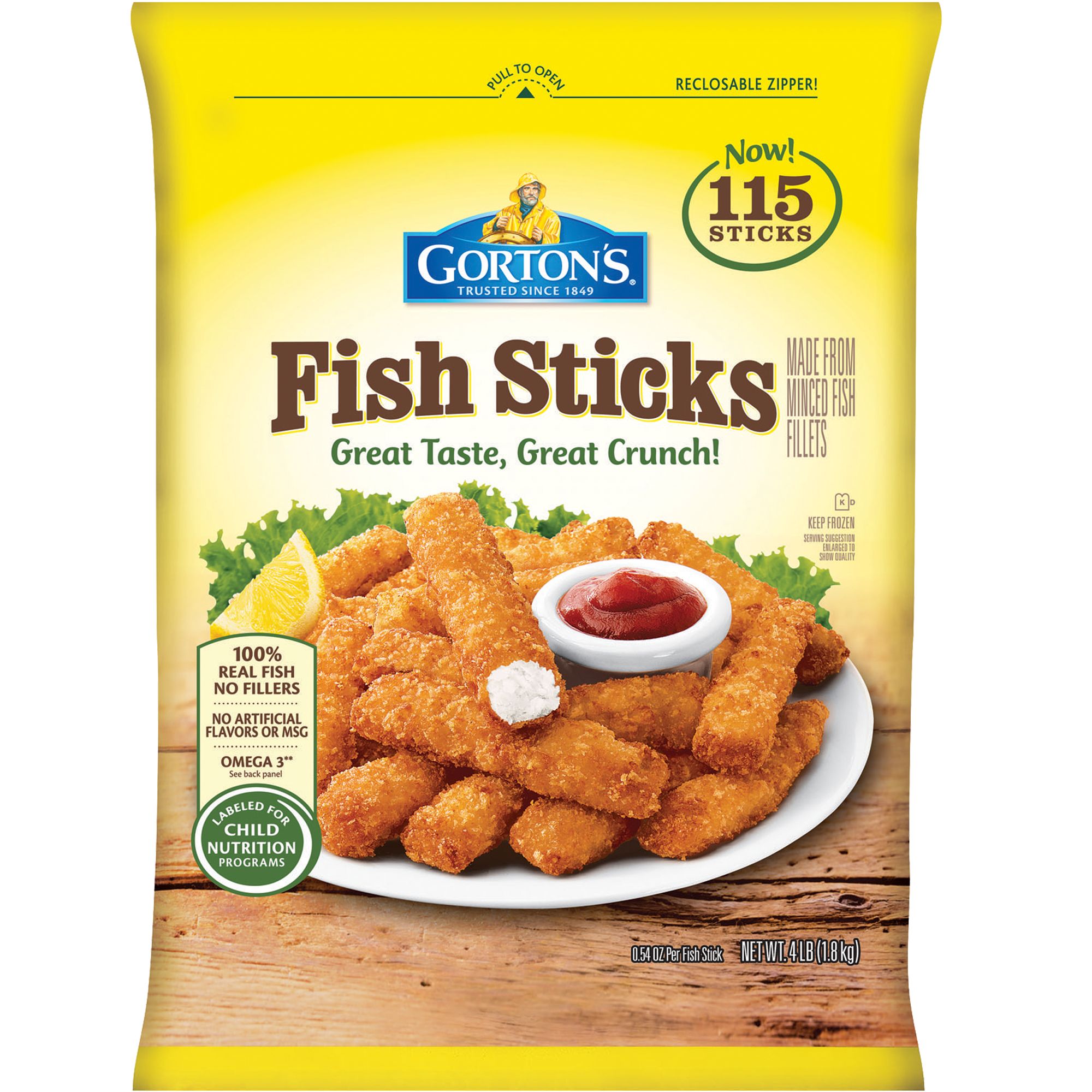 Includes 115 fish sticks