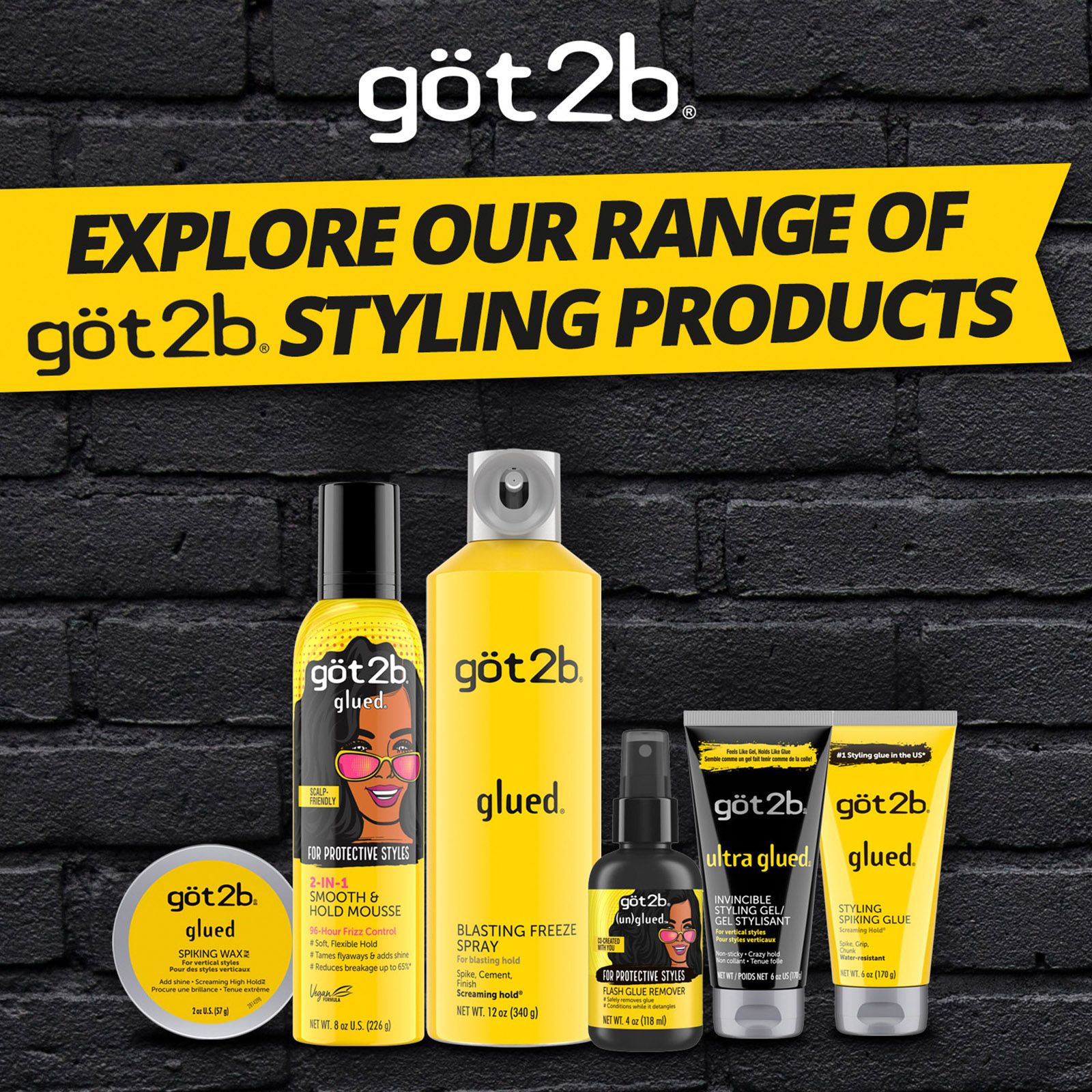 Create spiker styles with got2b Glued Hair Styling Spiking Gel! It’s for hair that ain't goin' nowhere. Push through hair to put it in place. Twist tips into stand-up straight spikes or haphazardly distribute all over for that unstructured, messy look! Delivers hold so strong (it's wind-tunnel tested) your style will last until your next shampoo. And of course, (we wouldn’t forget this part) it’s water resistant. Use on damp hair. Squeeze a small amount into palms, rub hands together and distribute evenly throughout hair. For over the top spikes, apply to finger tips and pull through hair twisting at the tips. For extra hold: Slightly dampen tips of spikes and reapply a small amount of glued formula to make your spikes extra stiff!