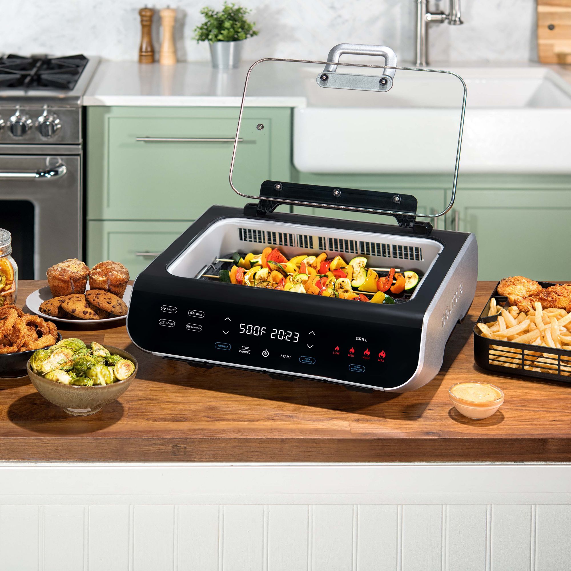 5-in-1 foodstation grills, air fries, roasts, bakes and dehydrates