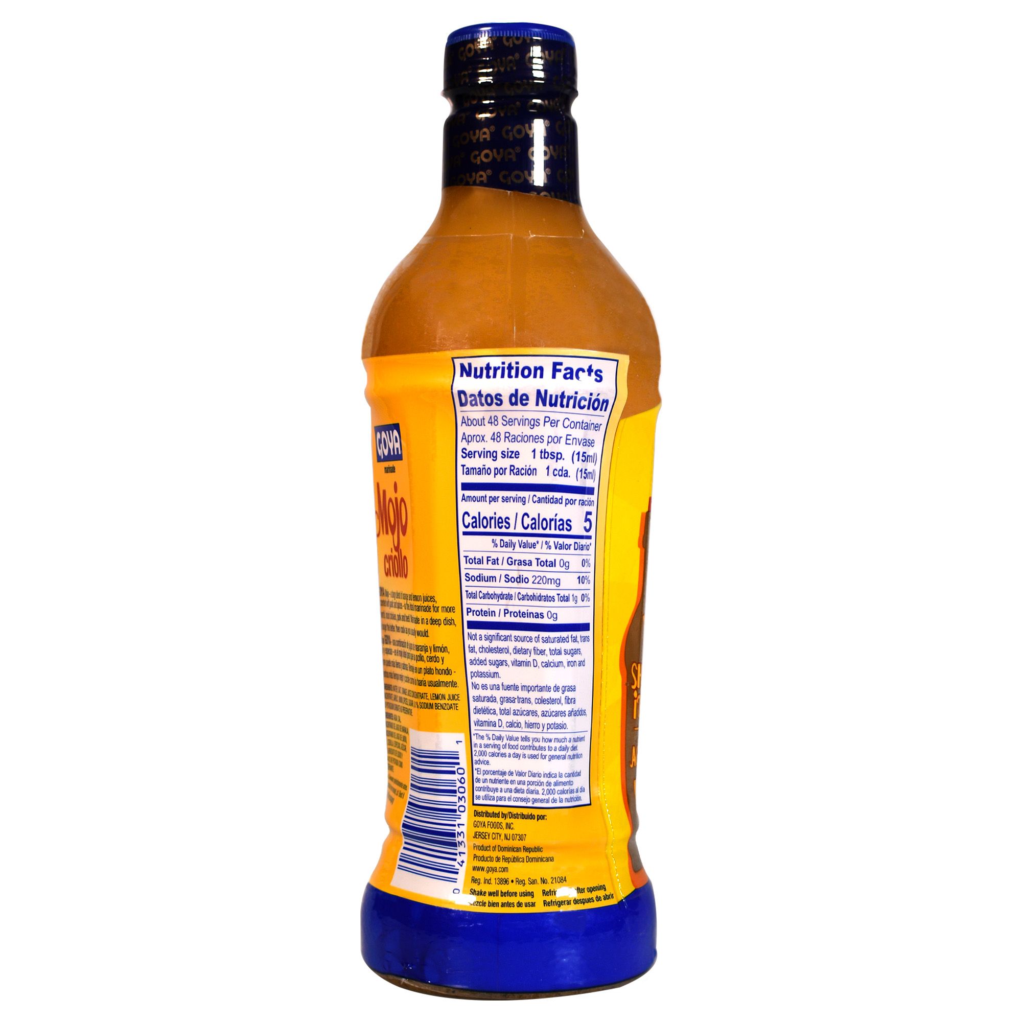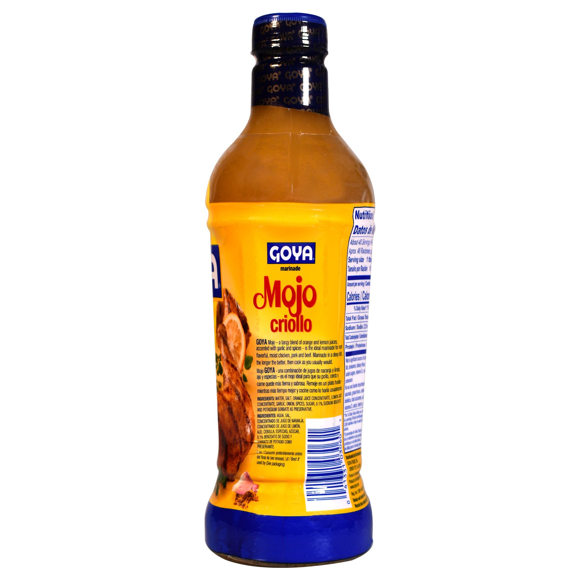 The Goya 24 Oz. Mojo Criollo Marinade adds Dominican flair to dishes. It's bursting with garlic, onion and citrus flavors to enhance your meats and poultry.