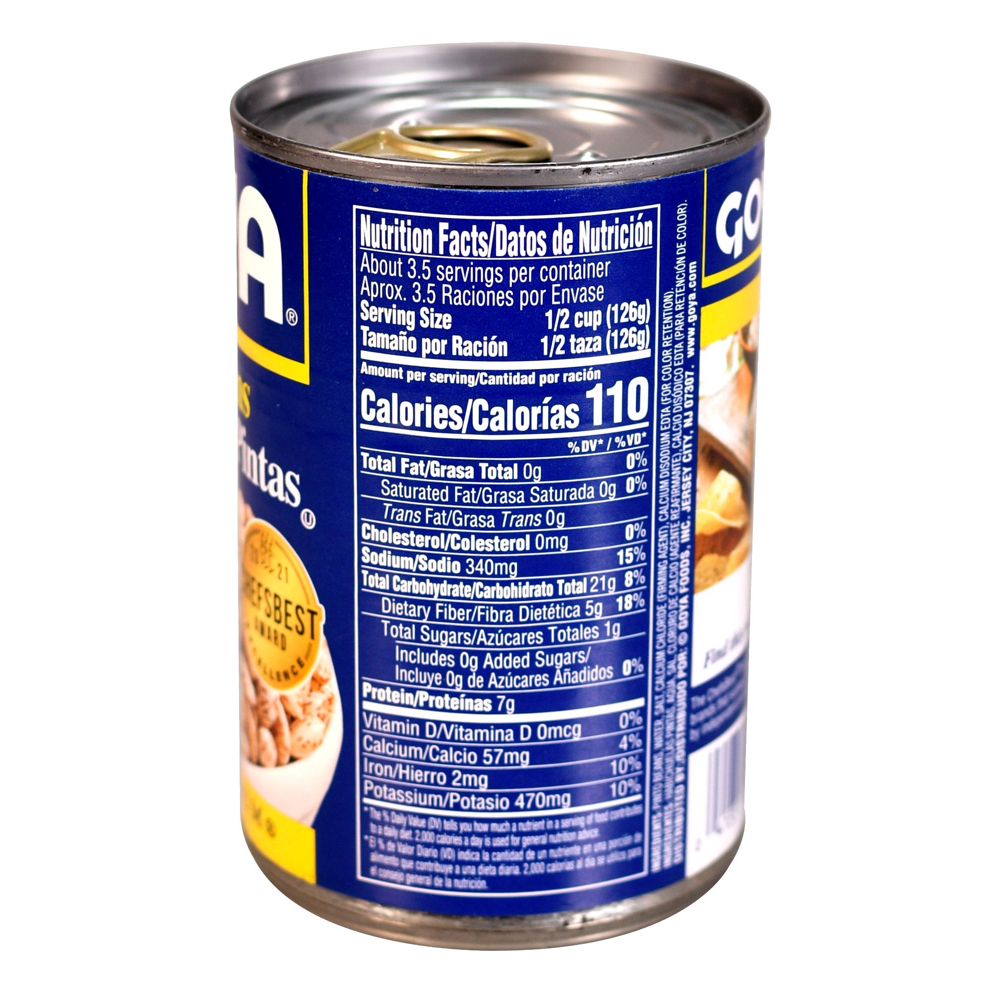 No fat No saturated fat 0g trans fat No cholesterol Good source of fiber Good source of iron and potassium Kosher Gluten free Includes whole pinto beans and water