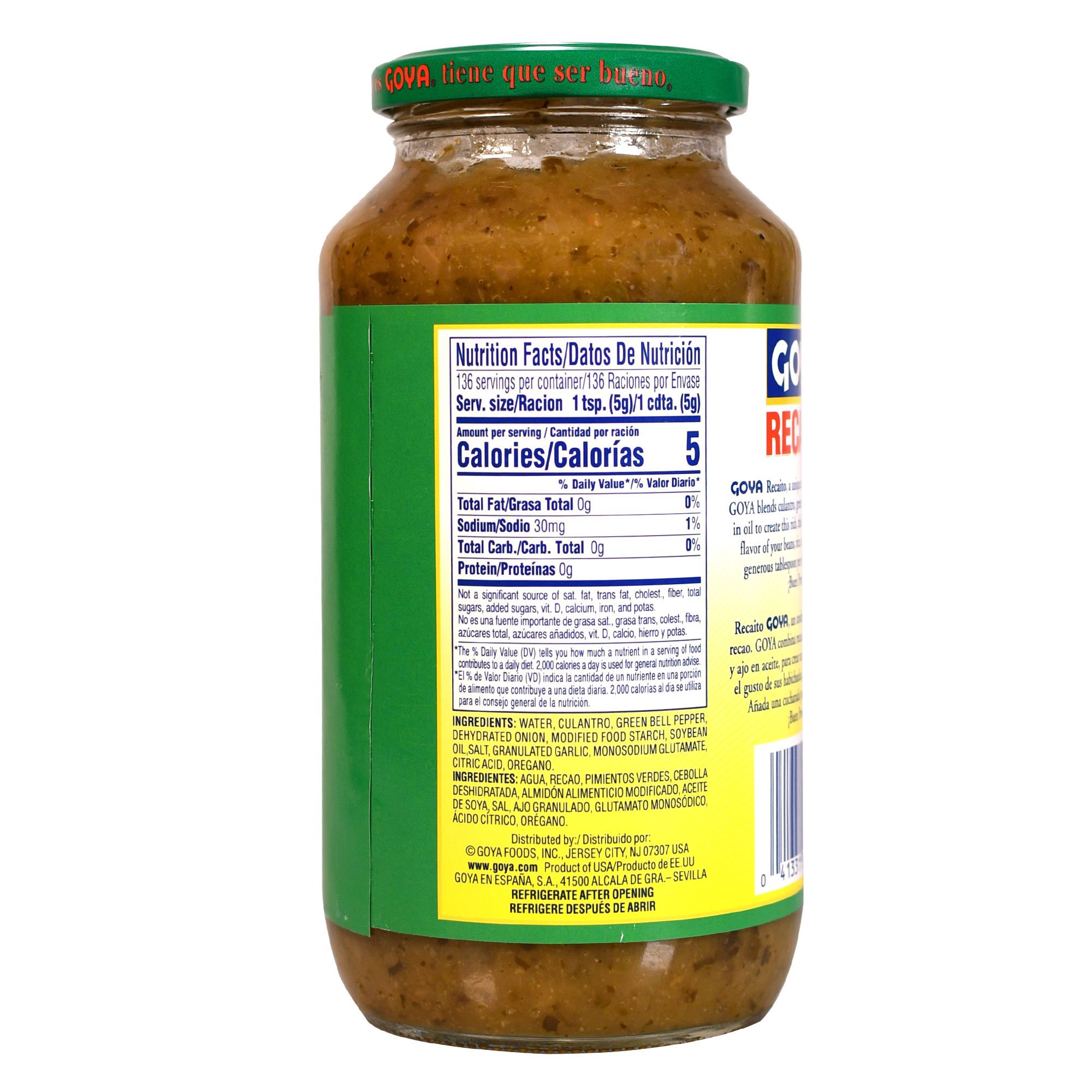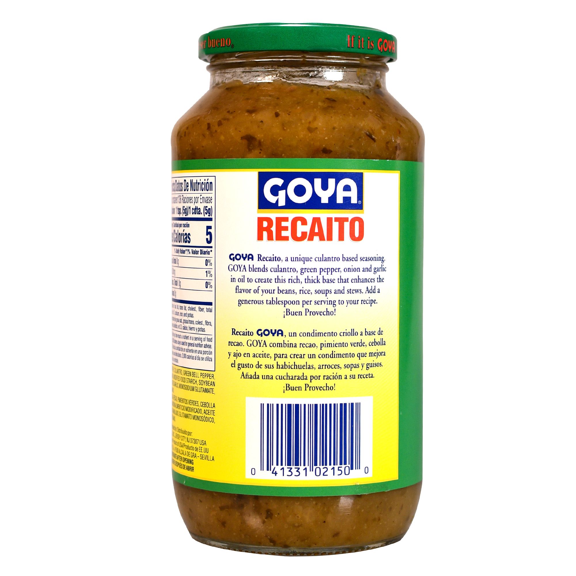 The Goya 24 Oz. Recaito Cooking Base enhances the flavors of beans, rice, soups, stews and other foods. Its ingredients, including cilantro and green peppers, create a thick cooking base.