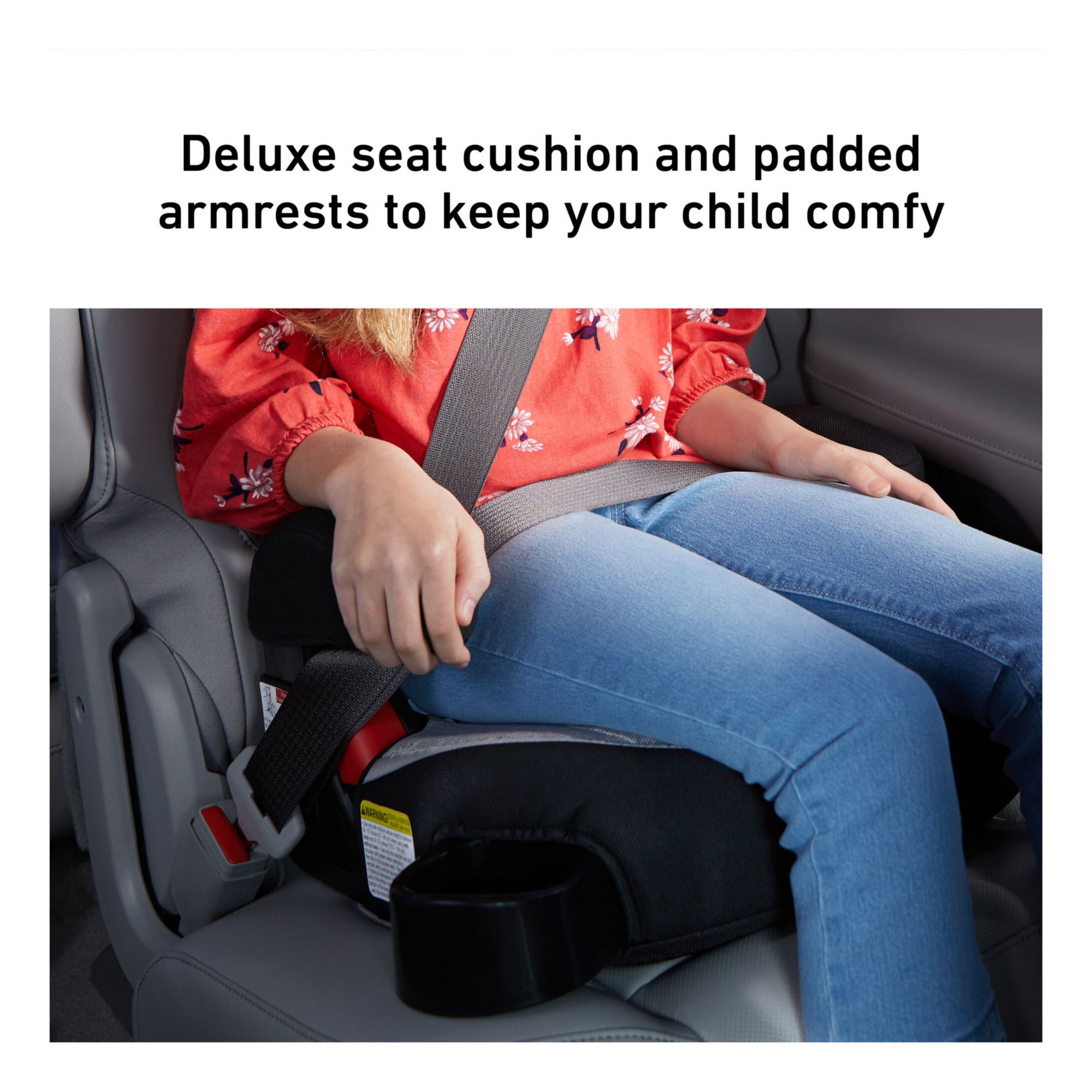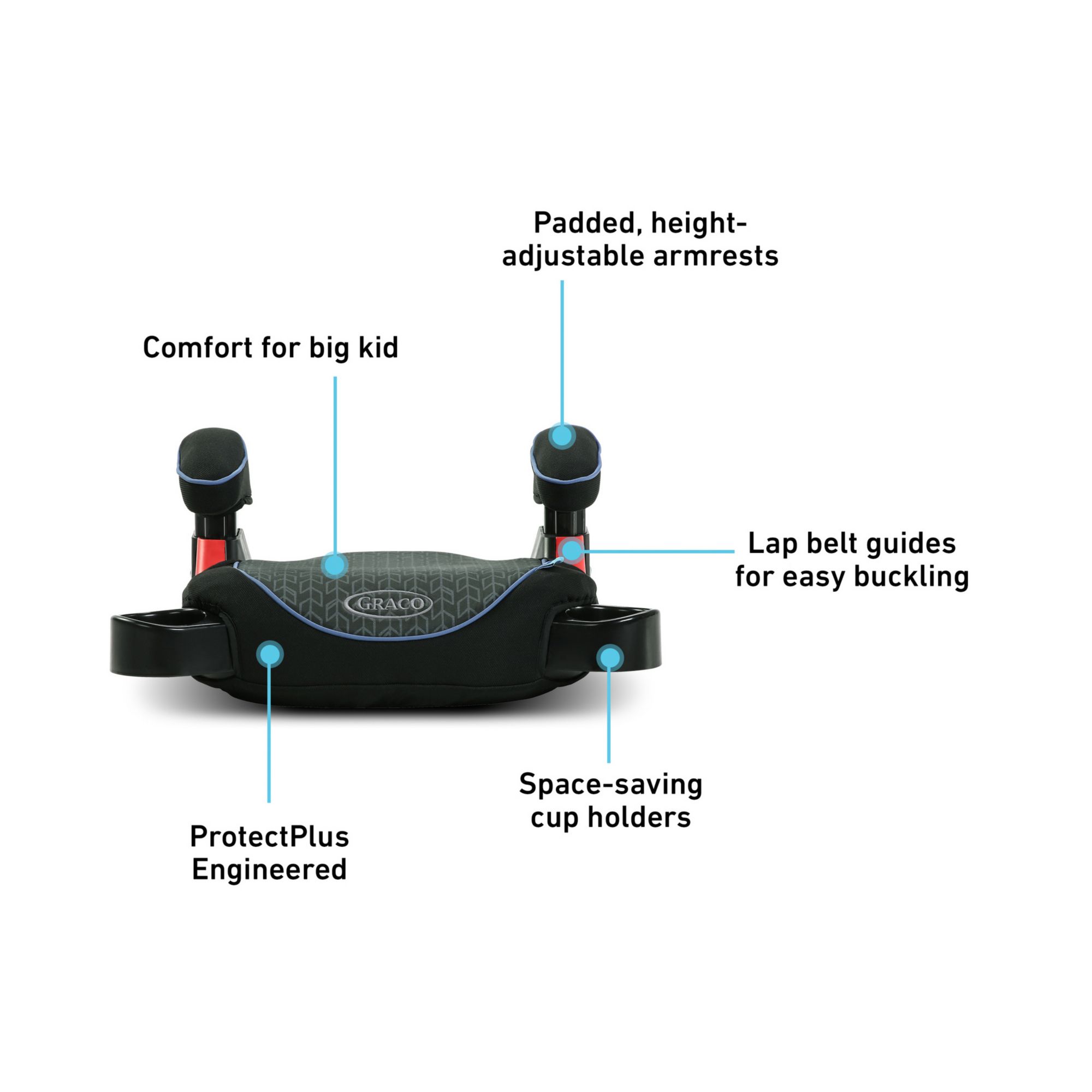 Keep your big kid comfortable and happy in the Graco TurboBooster Backless Booster. This seat helps save space with two hideaway cup holders and keeps your growing child comfortable with padded, height-adjustable armrests. The deluxe seat cushion is removable for machine washing. Parents have confidence that the TurboBooster's lap belt guides assist with self-buckling for a proper fit. This seat is Graco ProtectPlus Engineered to help protect your child in frontal, rear & rollover crashes.
