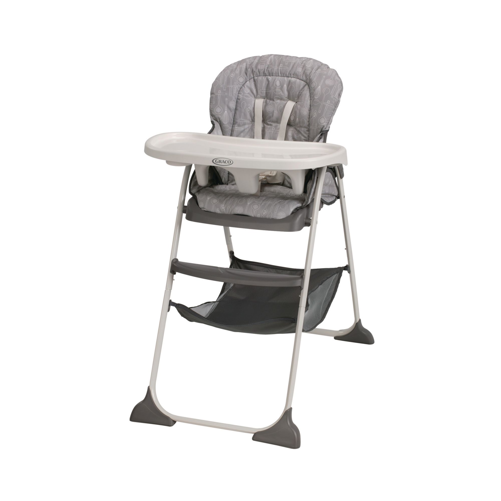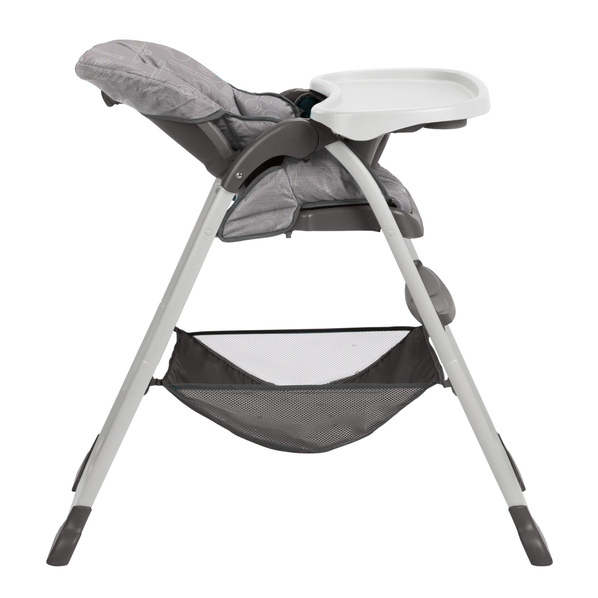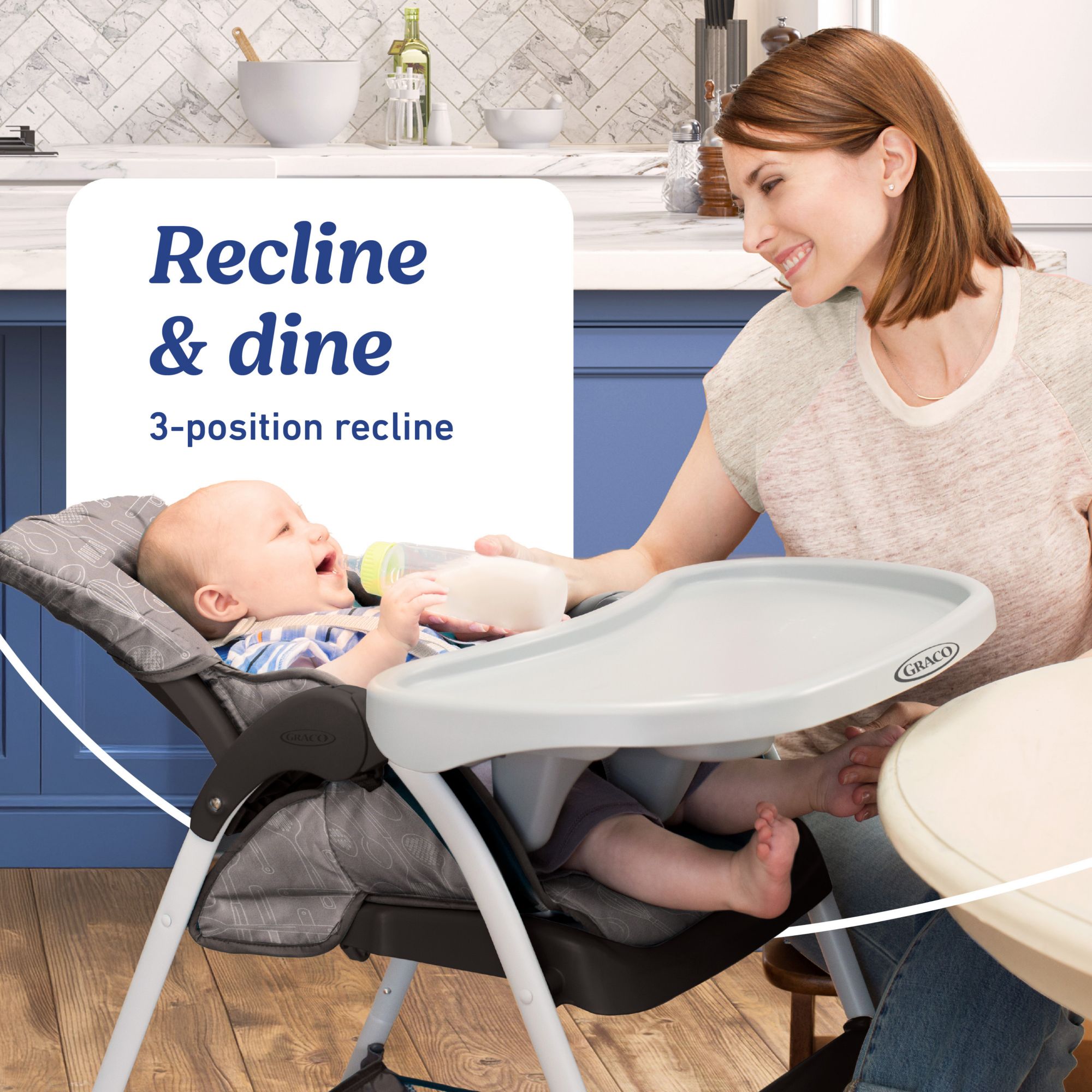 The Slim Snacker features three reclining positions, ensuring your little one is comfortable during every feeding. The wipeable seat pad simplifies cleanups after mealtime messes, while the full-sized tray with a cup holder offers ample space for meals, snacks and toys. It is also features a footrest to keep baby comfortable and a 5 point harness keeping baby secure. With extra-large bottom storage, this highchair is a single solution crafted to fit your family's needs.