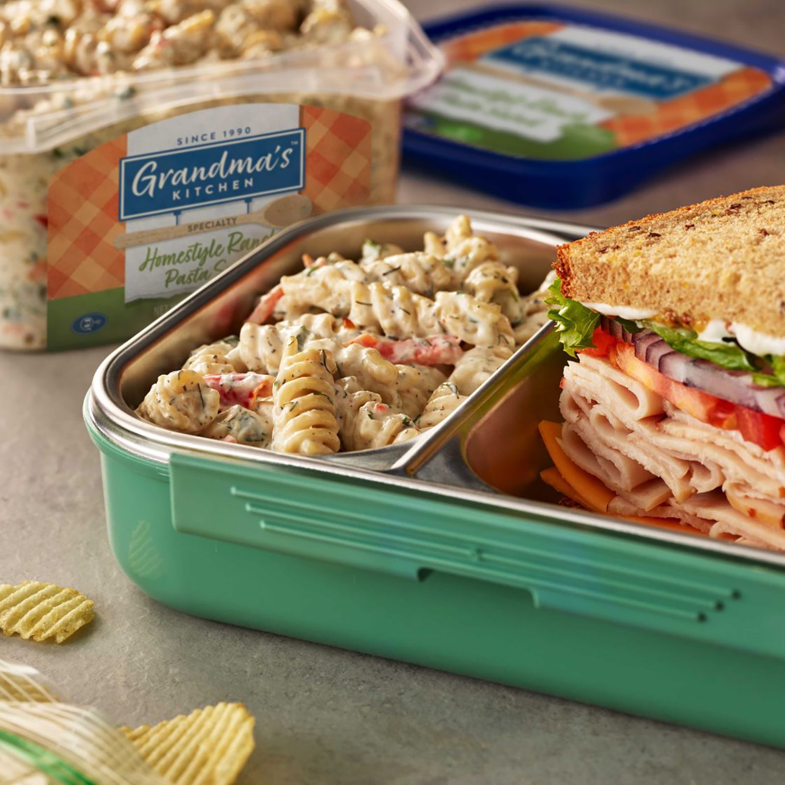Includes 1.75 lbs. of Grandma's Kitchen Homestyle Ranch pasta salad
