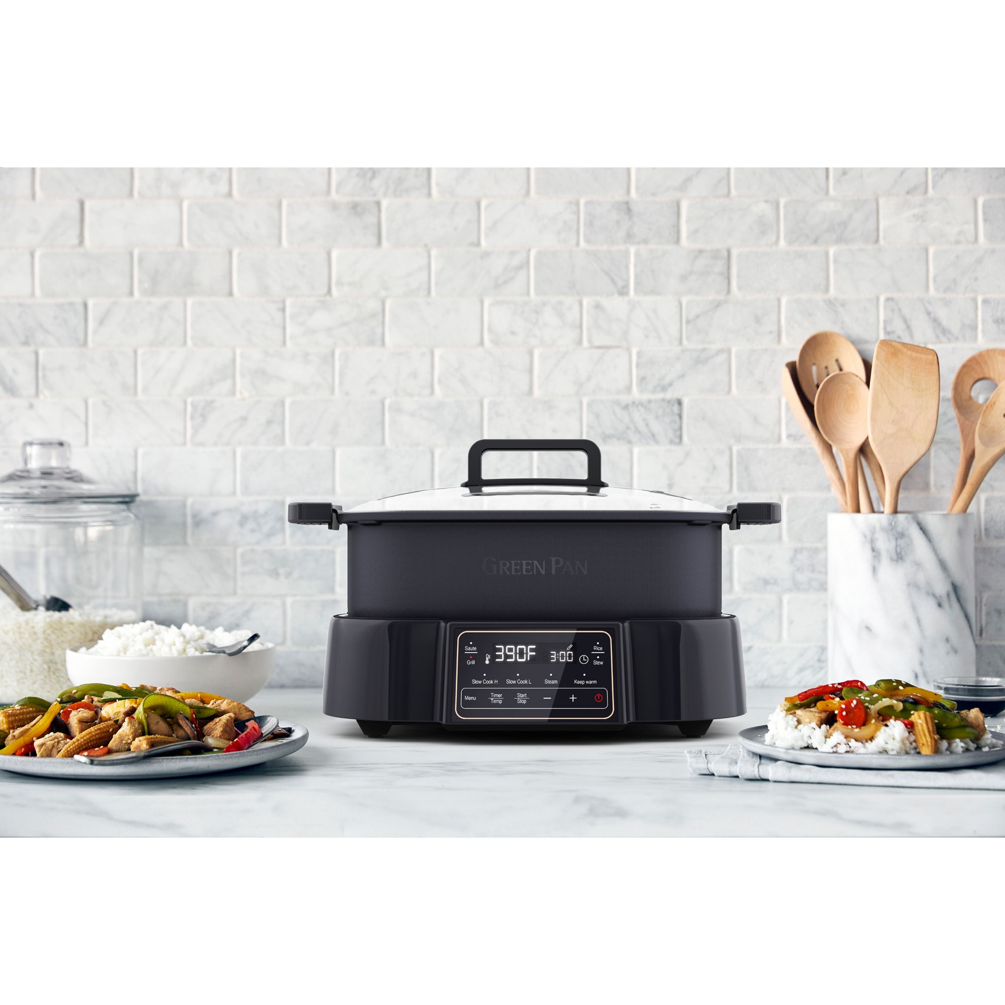 Eight-in-One: Design: Steam, sauté, stir-fry, grill, rice, stew, slow cook, and keep warm
