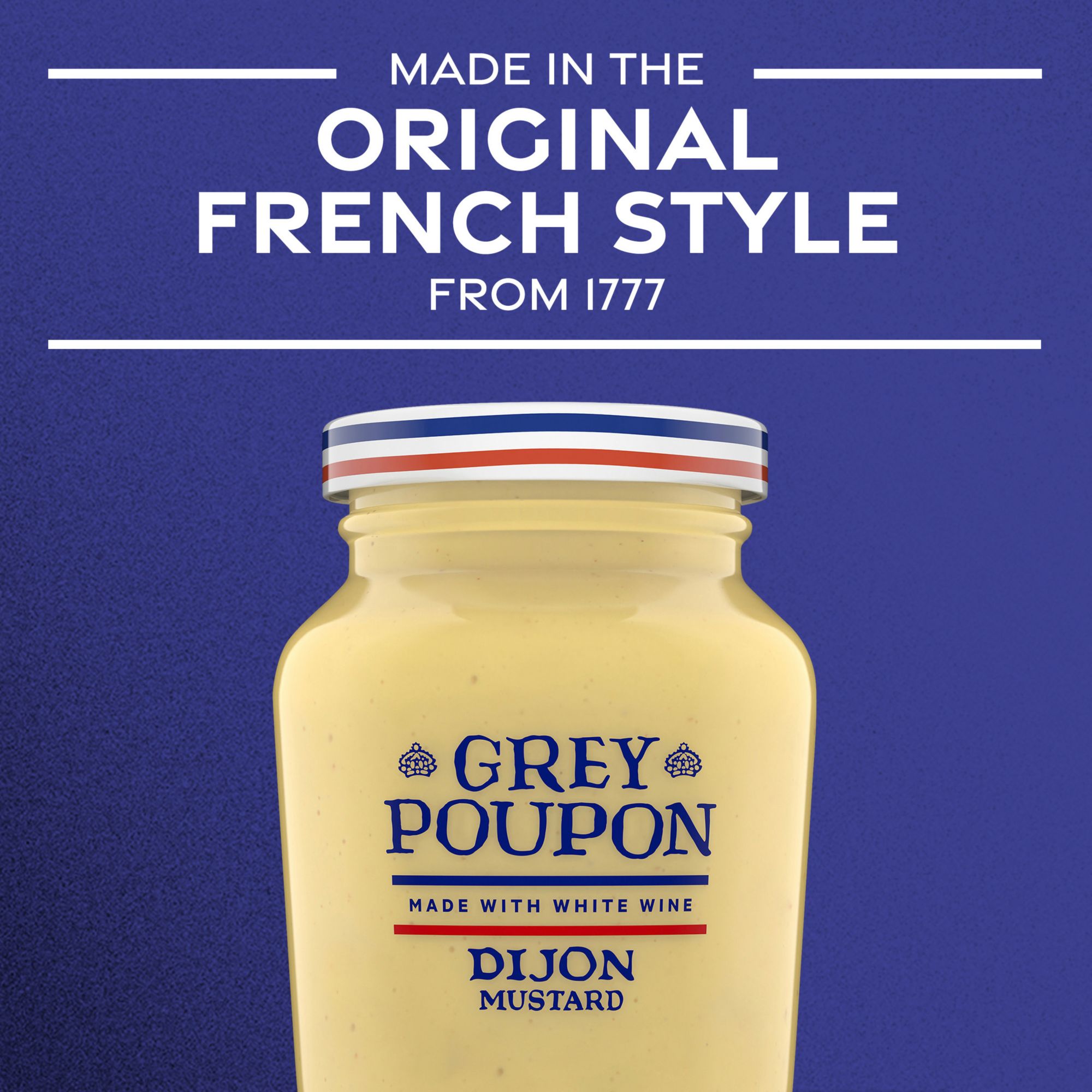 Since 1777, Grey Poupon Dijon Mustard has been prepared in accordance with the original recipe from Dijon, France for Mustard-lovers with discerning taste. Made with #1 Grade Mustard Seeds, this white wine infused mustard is blended with spices offer the gourmet flavor you expect from Grey Poupon. By bringing the refined taste of Grey Poupon Dijon Mustard to your favorite dishes and recipes, you can truly treat yourself to the finer things in life. Mix this tangy mustard sauce with balsamic vinegar and olive oil to create a delicious salad dressing, or use it as an ingredient to make a gourmet Dijon Mustard glaze and enhance your favorite chicken or pork entree. Whether you're snacking or preparing for a dinner party, Grey Poupon Dijon Mustard will elevate your next occasion. This Dijon Mustard is packaged in a 32 ounce resealable bottle for easy application and lasting freshness.