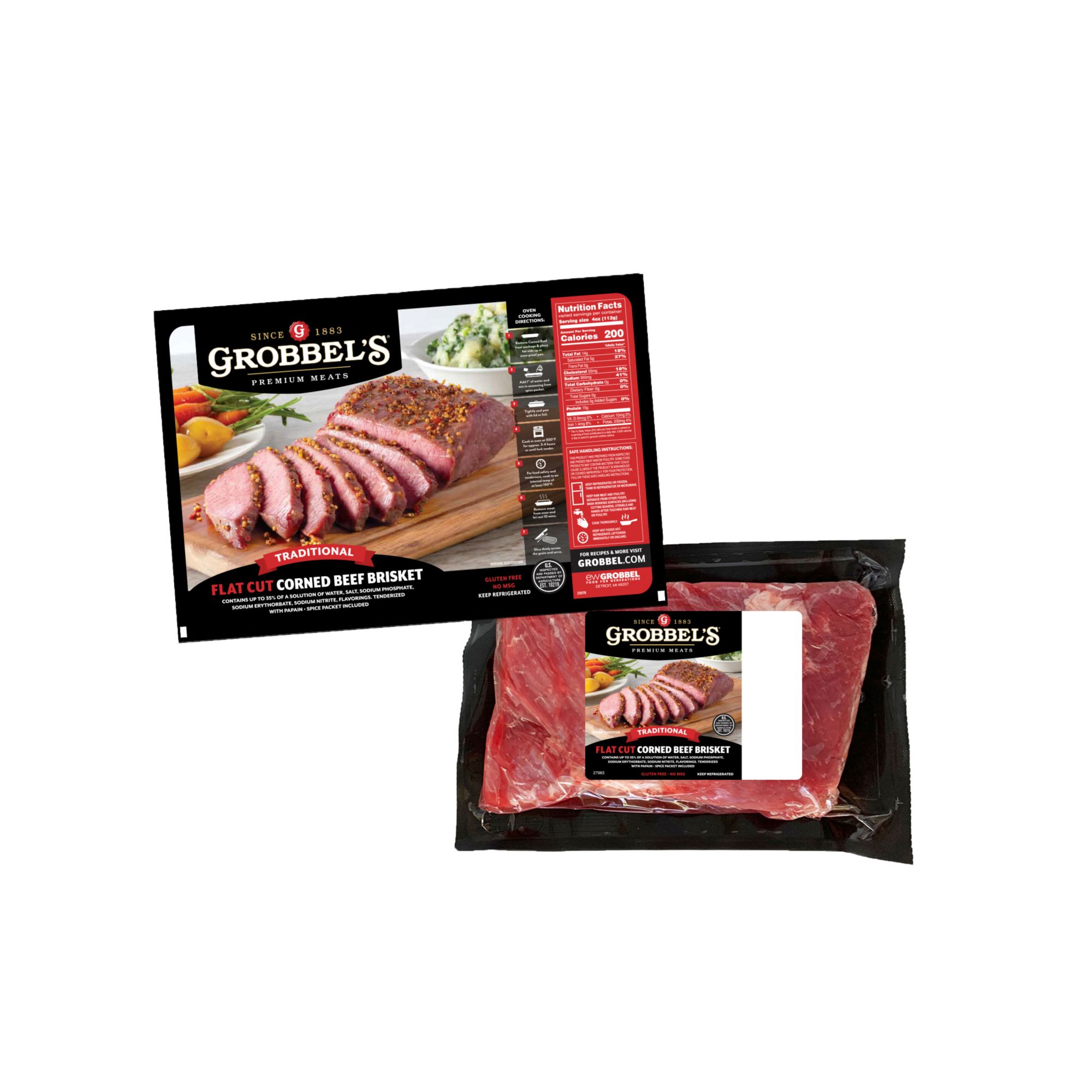 Grobbel's corned beef brisket flat cut is made from select or better briskets, hand trimmed and cured with our traditional Irish American corned beef flavor profile. Spice packet is included.