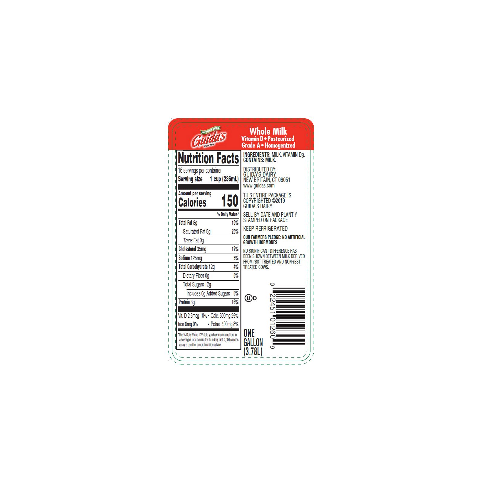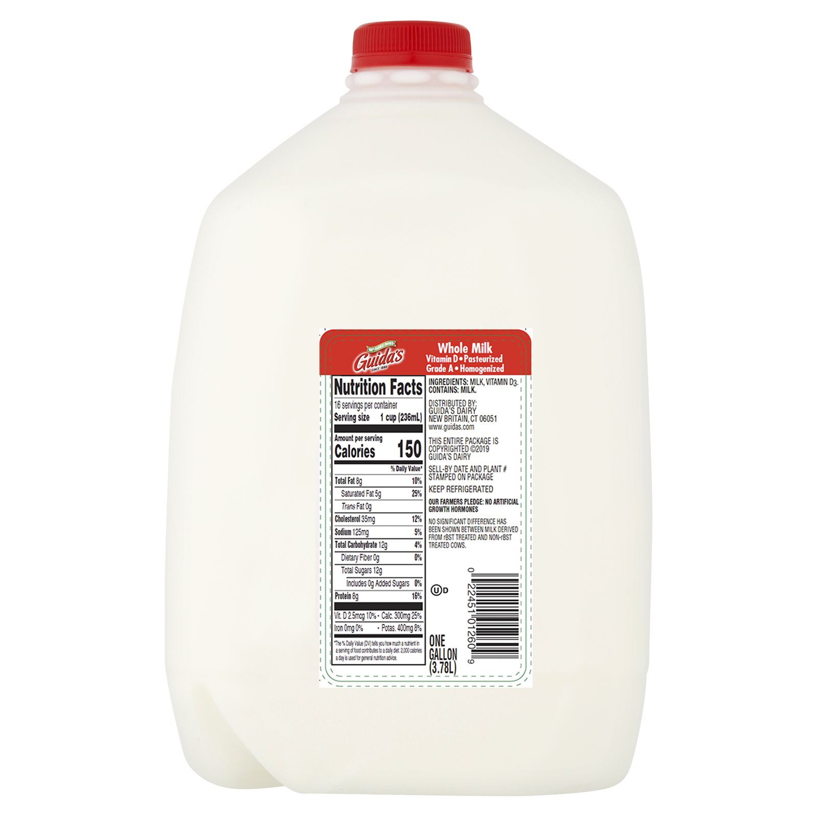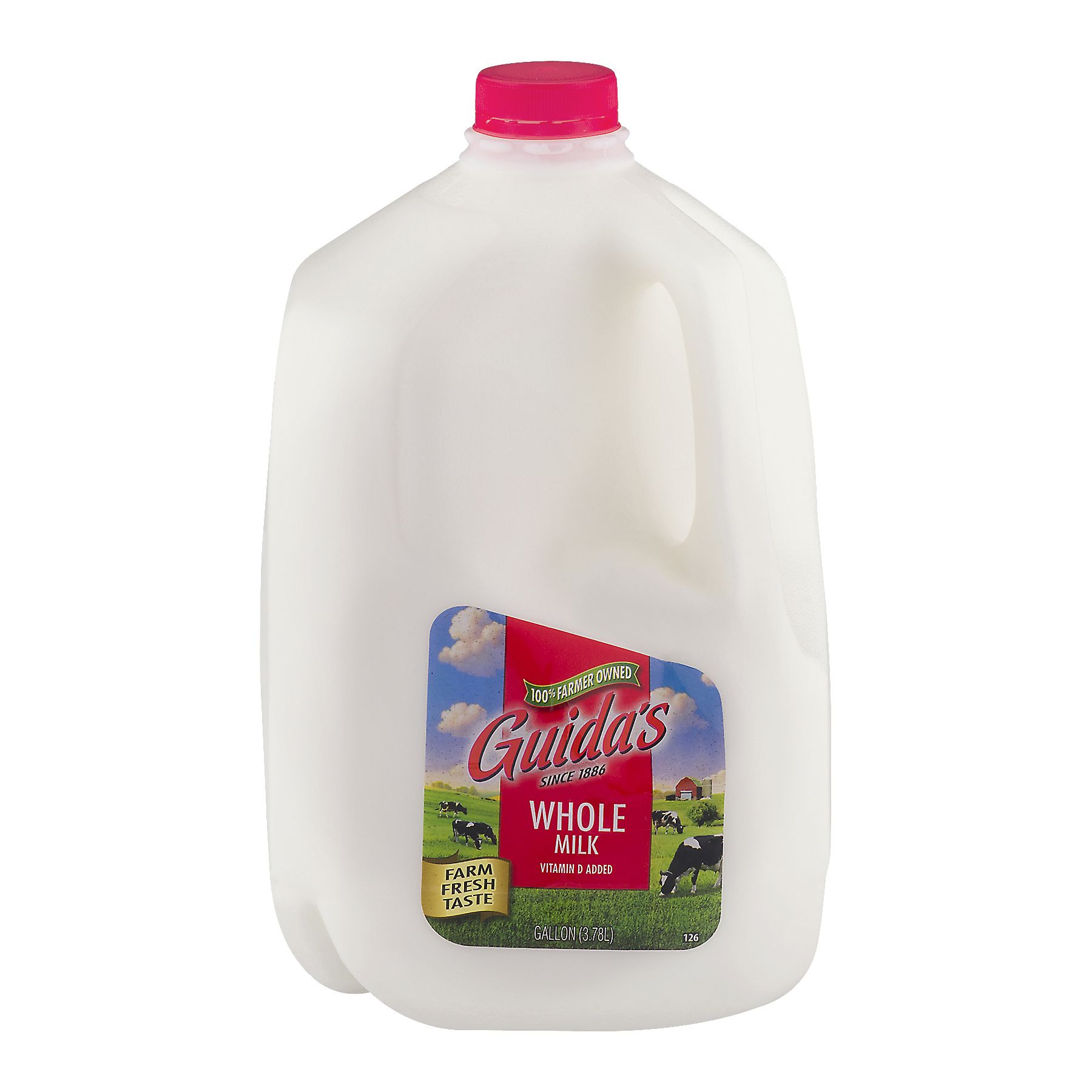 Guida's Dairy Whole Milk in a gallon bottle is fresh, local, and nutritious. Sourced from family farms committed to producing high quality dairy products, Guida's Dairy milk comes from cows not treated with artifical growth hormones.