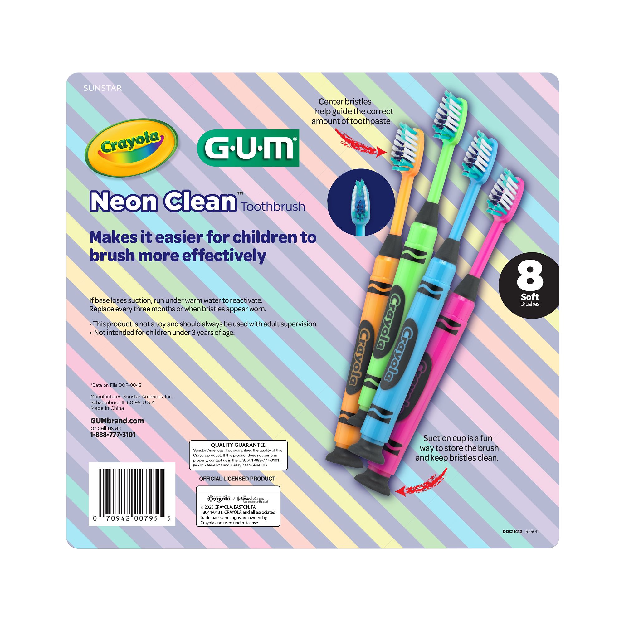 Gum Crayola Neon Clean Children's Toothbrush, Soft Bristled Kids Toothbrush Set, Age 3+, 8 ct.