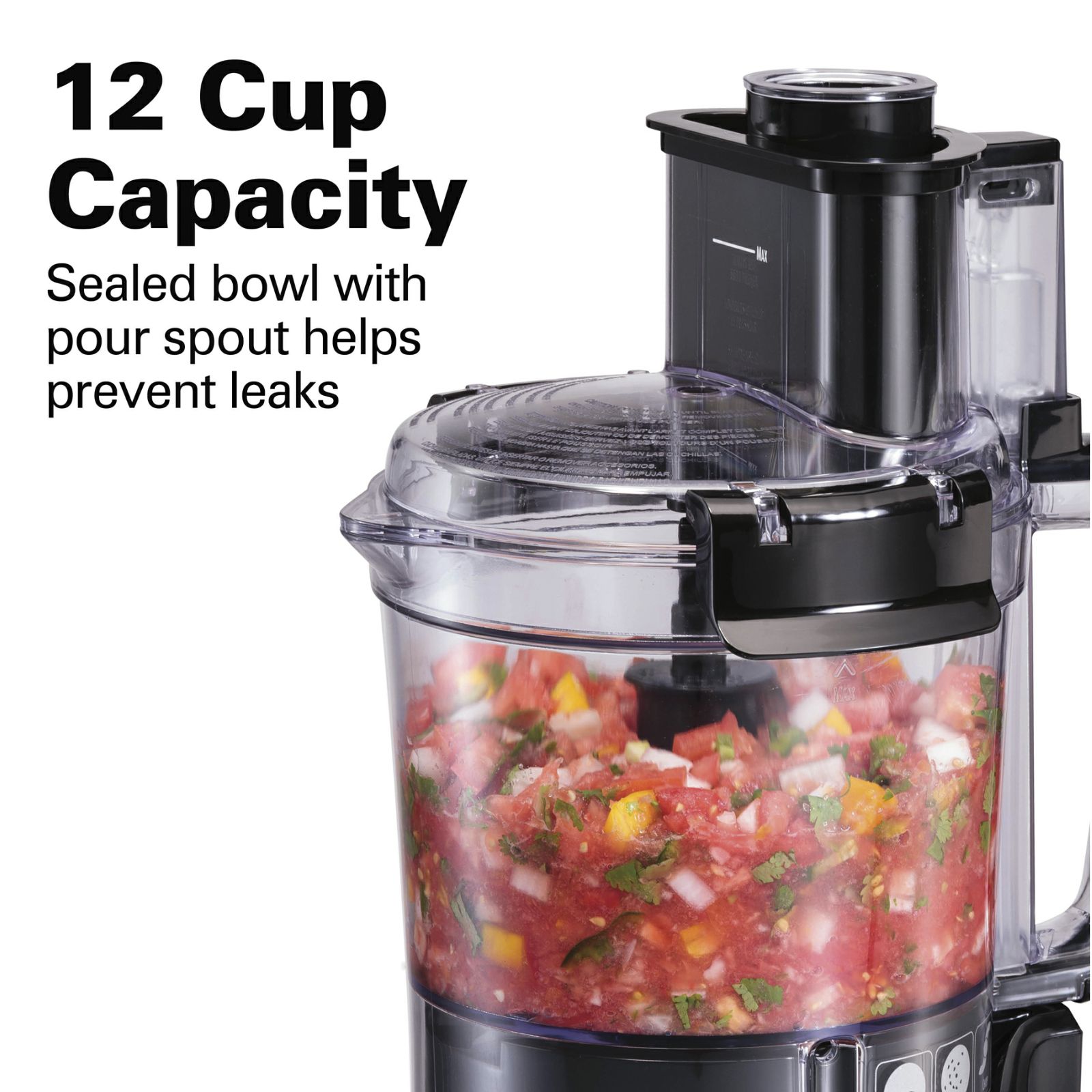 Includes 12 cup capacity with powerful 450 watt motor