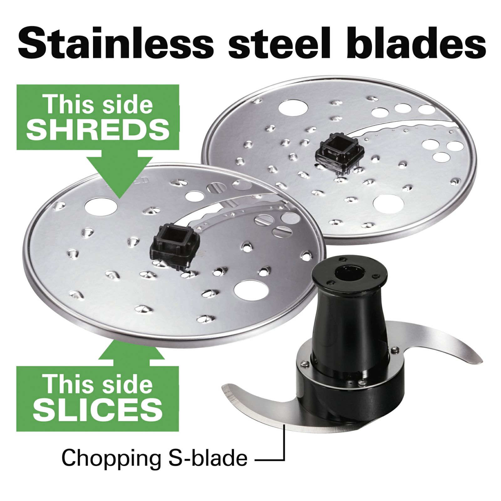 Whether you are cooking for two or prepping a large family meal, the Hamilton Beach Stack and Snap 12 Cup Food Processor takes the guesswork out of food processing with a simple function guide that shows you which blade to use and which button to press. Designed to be uniquely simple – there’s no twisting, turning, or locking required when assembling the food processor. Chop, slice, shred, mix and puree just about anything with the powerful 450 Watt motor. You can process soups, sauces, or other liquids without worrying about leaks because the bowl is sealed. The large-capacity bowl holds 12 cups.
