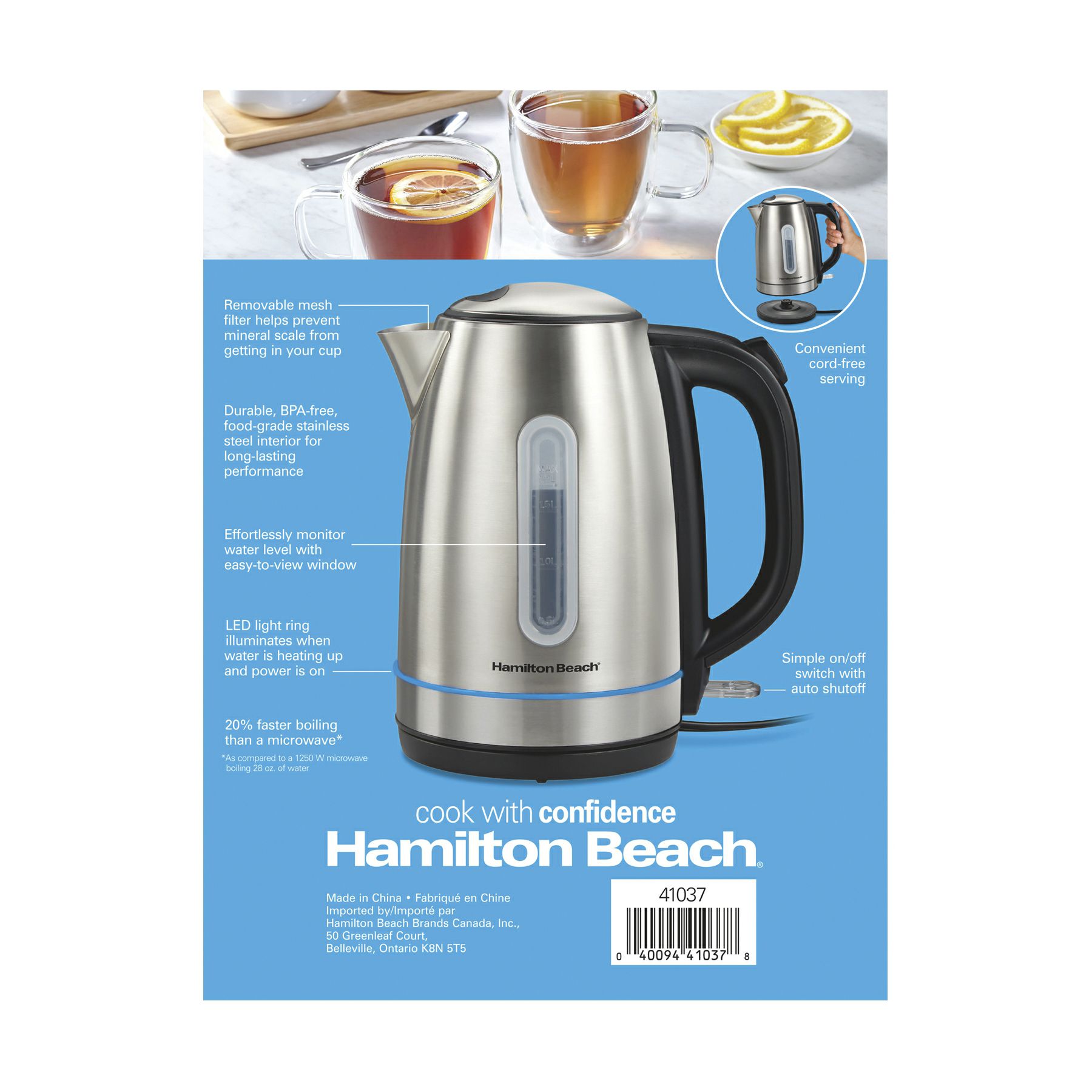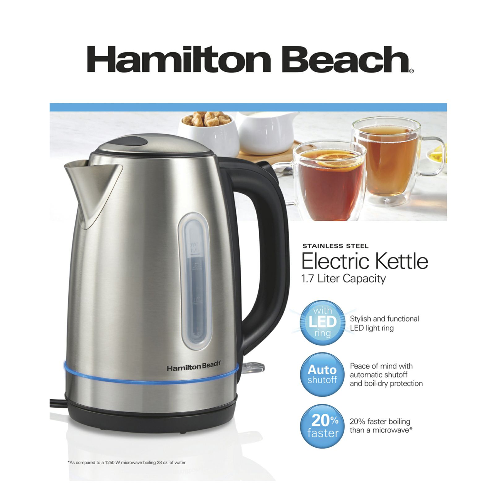 Hamilton Beach Stainless Steel Kettle with LED Light Ring