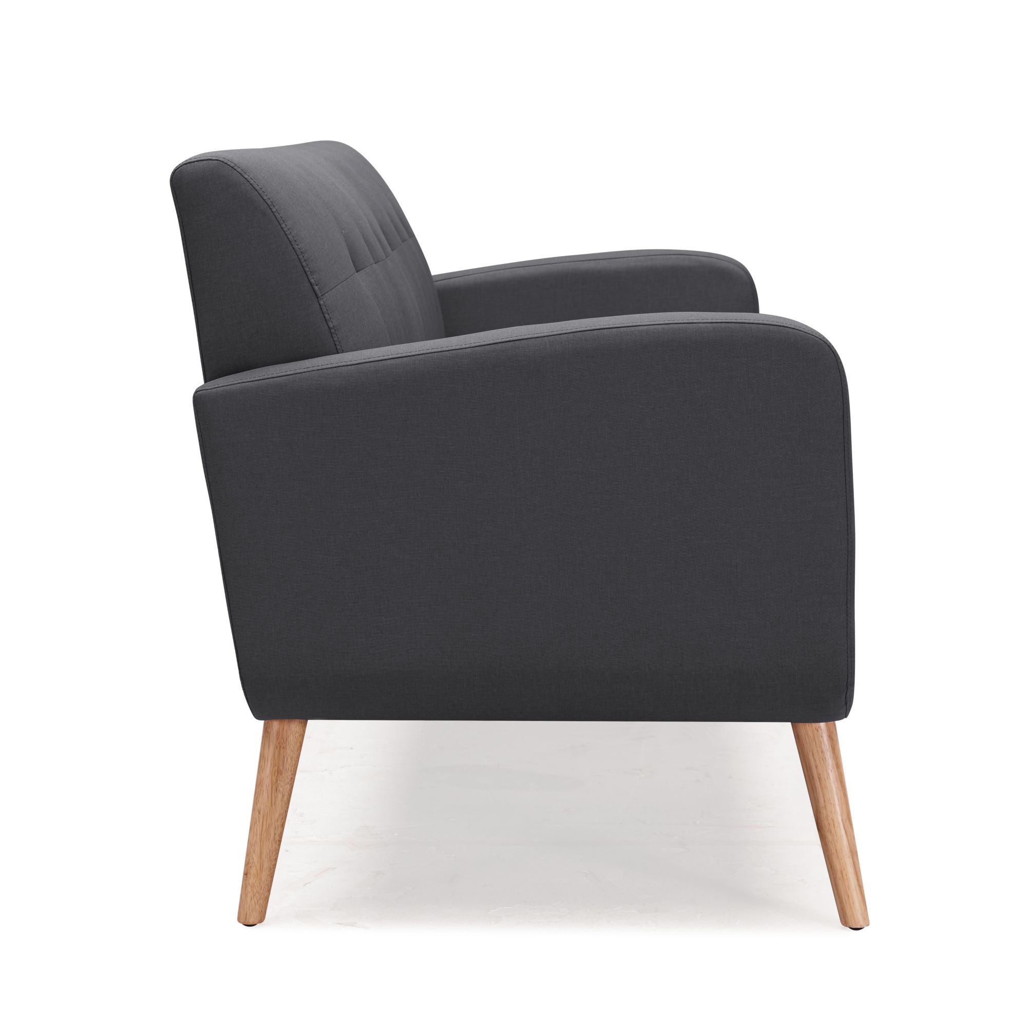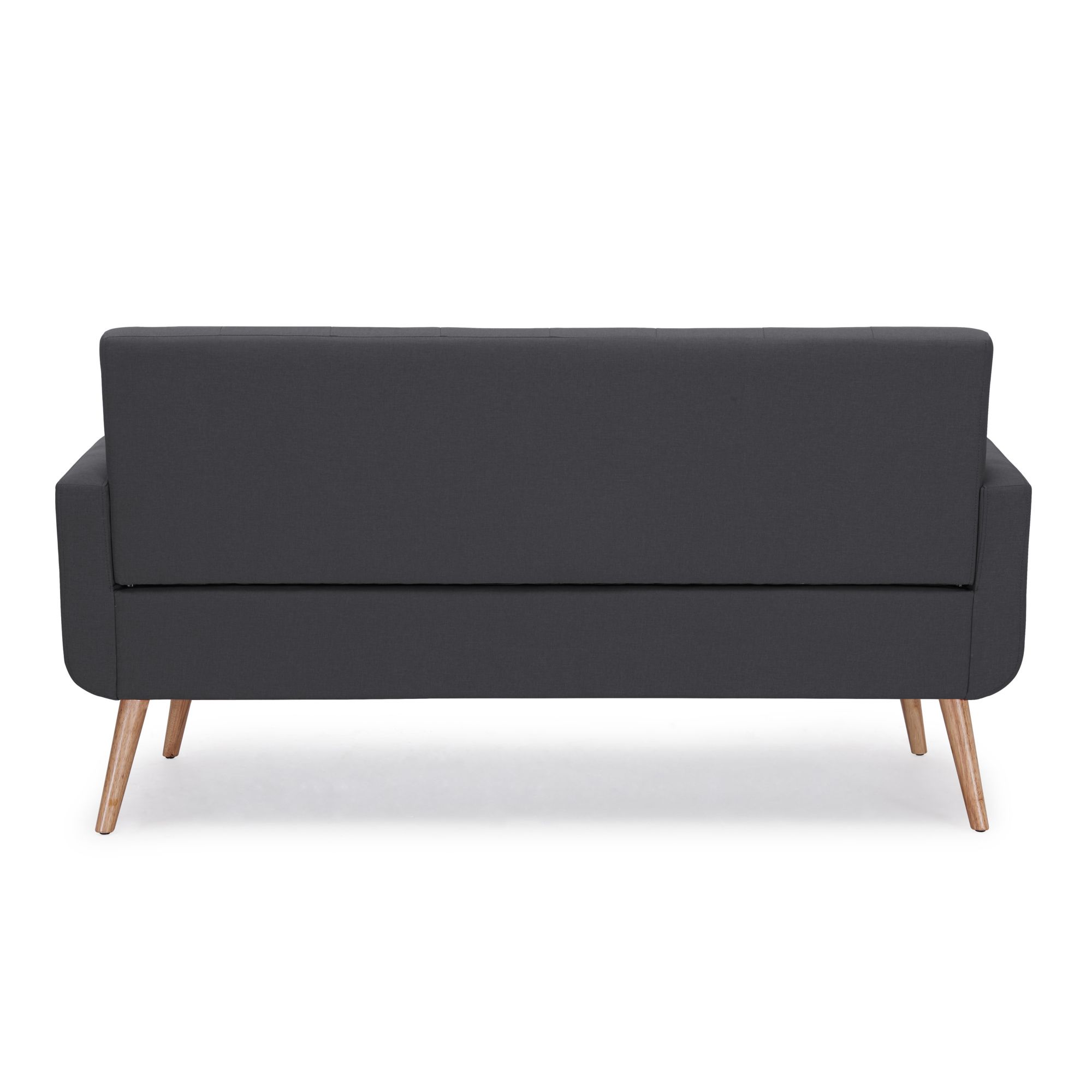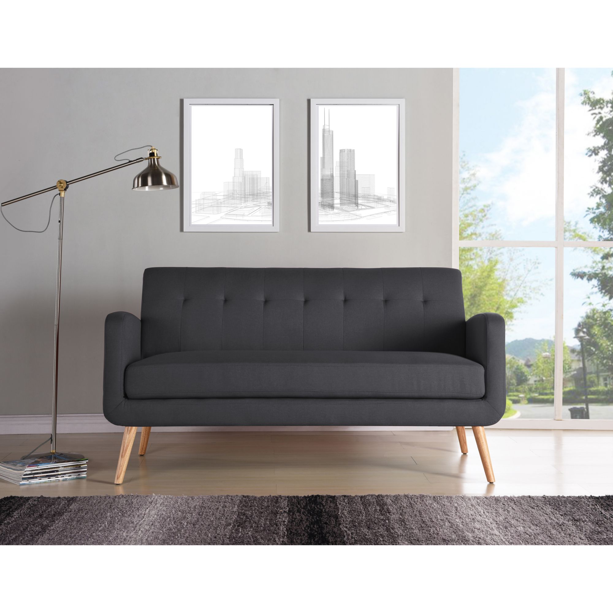 Solid wood legs with a natural finish Frame is made of engineered mixed hardwoods Charcoal black linen upholstery is made of 100% polyester Seat and back cushions are attached Pocketed coils and thick foam cushions help keep you comfortable Supports up to 600 lbs. evenly distributed HANDY LOCK technology allows easy assembly Includes sofa and assembly instructions Warranty: 1 year parts