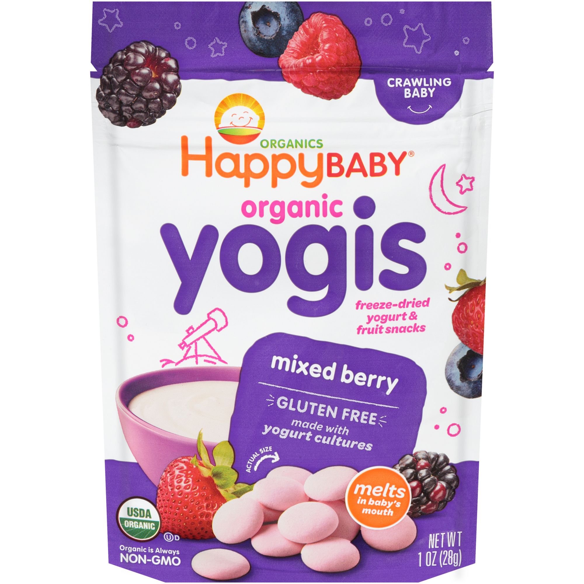 Happy Baby Yogis are a delicious, melt-in-your-mouth organic baby snack full of yummy goodness. These snacks are made with organic yogurt cultures and real organic fruit, and deliver a burst of yummy flavor to delight your baby's taste buds. This easy to grab snack helps support baby's developing pincer grasp. There are no artificial flavors, colors or gelatin in these freeze-dried yogurt drops - only organic banana and mango thoughtfully combined with good-for-you ingredients.